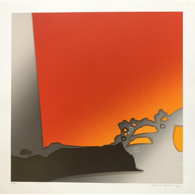 FUKUDA, KENJI "Abstrato-1989" Serigrafia S/ Papel  -Med: 65x65 cm (Obra) e 82x72 cm (Mold) -Assinado e Dat 1989 no CID. Exemplar 141/150. Com moldura em madeira e vidro de proteção.
