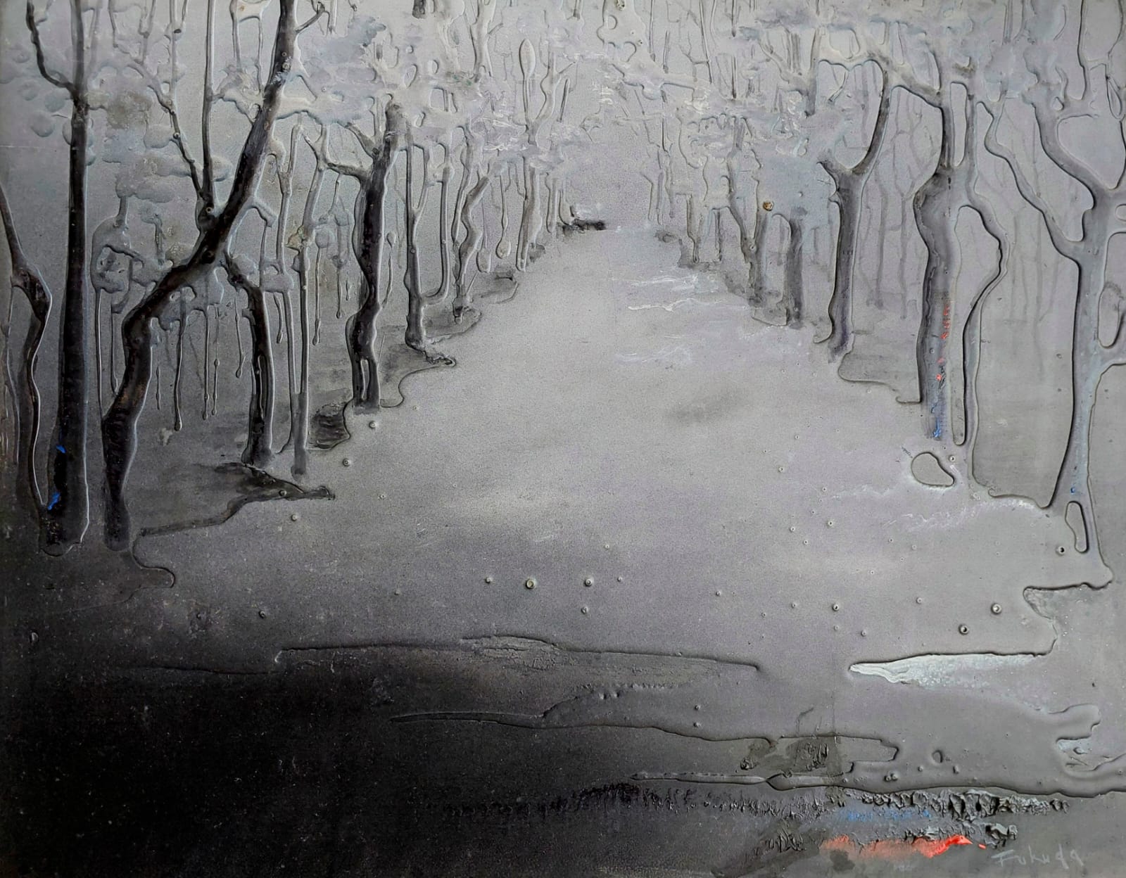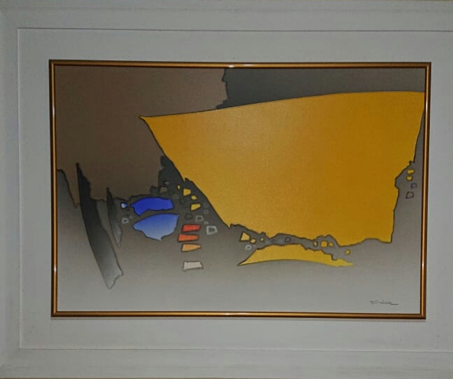 Kenji Fukuda - Paisagem. Óleo sobre lâmina de alumínio, 98x108 cm, déc. 80, A.C.I.D. Com moldura