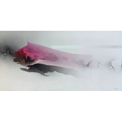KENJI FUKUDA (1943) - Abstração - Acrílica e pigmentos sobre tela - Assinado CID. 130 x 130 cm.