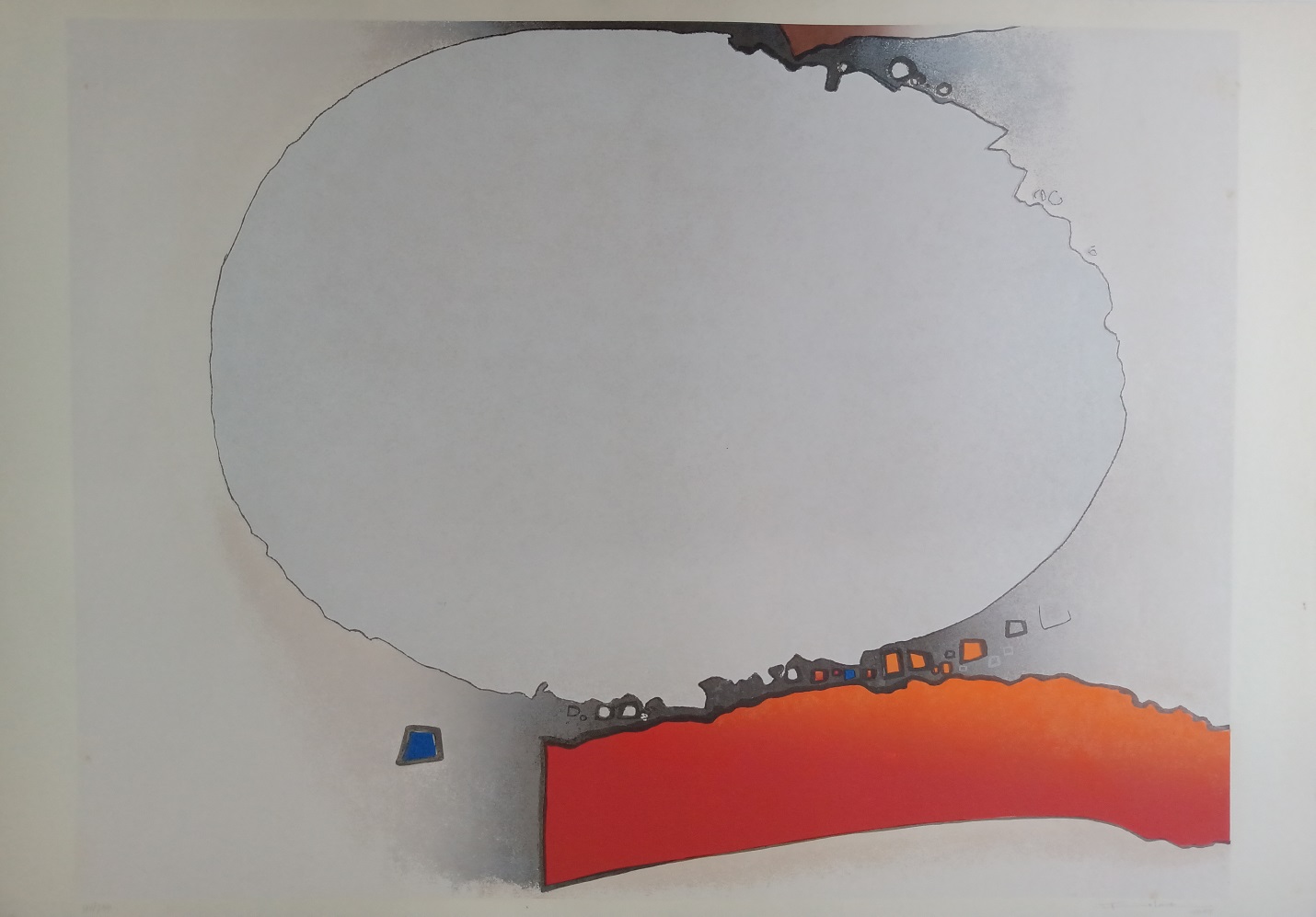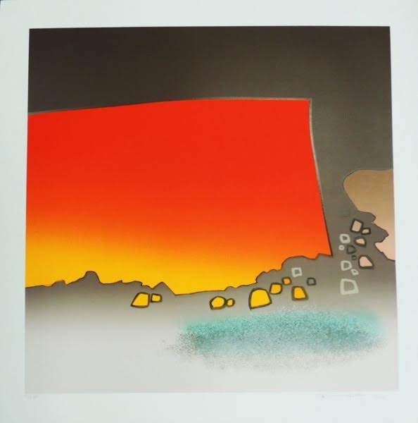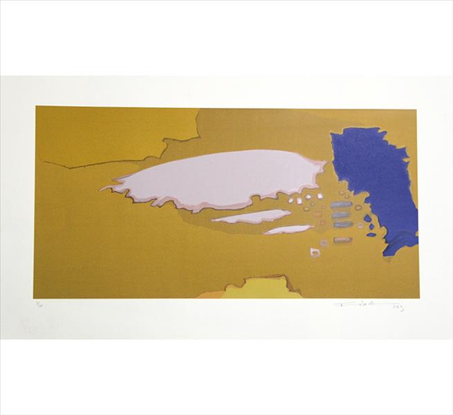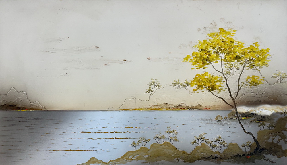 Kenji Fukuda - Paisagem. Óleo sobre lâmina de alumínio, 98x108 cm, déc. 80, A.C.I.D. Com moldura