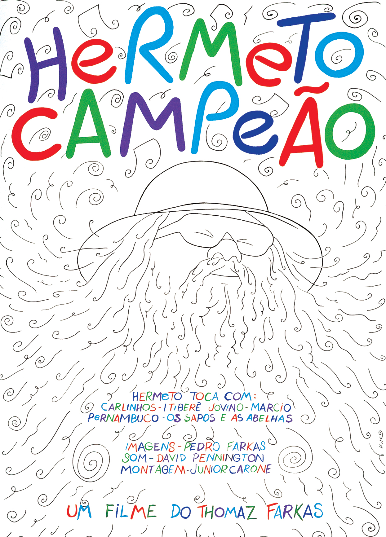 Cartaz do filme Hermeto Campeão, dirigido por Thomas Farkas. No filme, fotografias apresentam Hermeto Paschoal em meio aos instrumentos que toca no estúdio em sua casa. Os ensaios onde os sons são descobertos e o improviso dá o tom. Depoimentos de Hermeto sobre a construção autodidata de seu conhecimento teórico sobre música e sua posição política sobre o mercado. Os músicos que integram a sua banda falam sobre o processo conjunto de criação e a admiração que sentem pelo multiinstrumentalista. A criação de Hermeto a partir do sons das abelhas e junto aos sapos. A utilização de objetos inusitados feitos de ferro e o uso do próprio corpo para a geração de novos sons. Farkas que disse certa vez que “o filme documentário, porque é uma interpretação e não simplesmente uma descrição do real, pode representar um papel importante no processo cultural. No Brasil, ele adquire um significado mais amplo ainda quando se pensa nas distâncias, não somente geográficas mas também culturais. Como apresentar as diferentes manifestações culturais, ligadas a uma realidade específica em cada região do país, senão através do filme documentário?”. Os filmes que produziu e fotografou na década de 1960, e os que realizou na década seguinte, como Hermeto Campeão ou Todomundo, obedecem a este impulso: percorrer mais rapidamente as distâncias culturais e geográficas do país. Festivais e Prêmios: Participou da Los Angeles International Film Exposition – Los Angeles, Califórnia – USA – 6 de julho de 1984. Prêmio Melhor Roteiro pela Comissão de Cinema da Secretaria de Cultura do Estado de São Paulo – 1980. Melhor Filme Documentário – XI Jornada Brasileira de Curta-metragem – Salvador, Bahia 1982. Melhor Roteiro no Festival de Gramado, 1982, (RS)