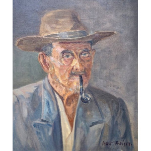 Kurt Boiger - Homem com cachimbo - Óleo sobre tela - Medidas 46,5 x 38,5 cm - Assinado