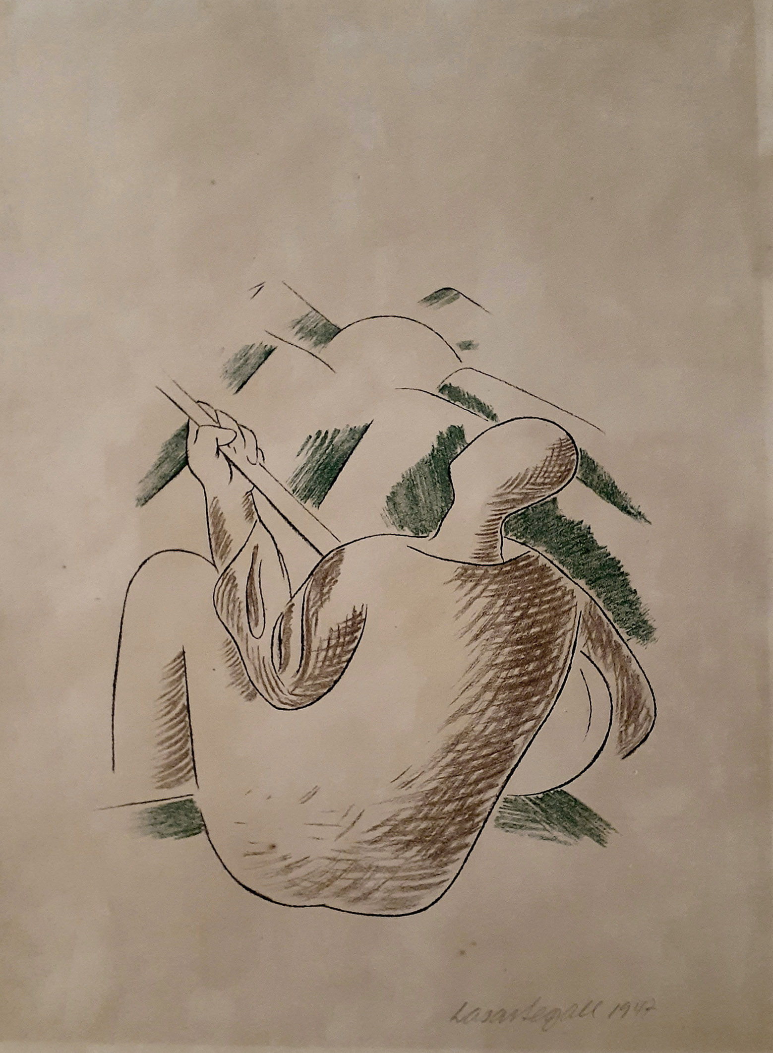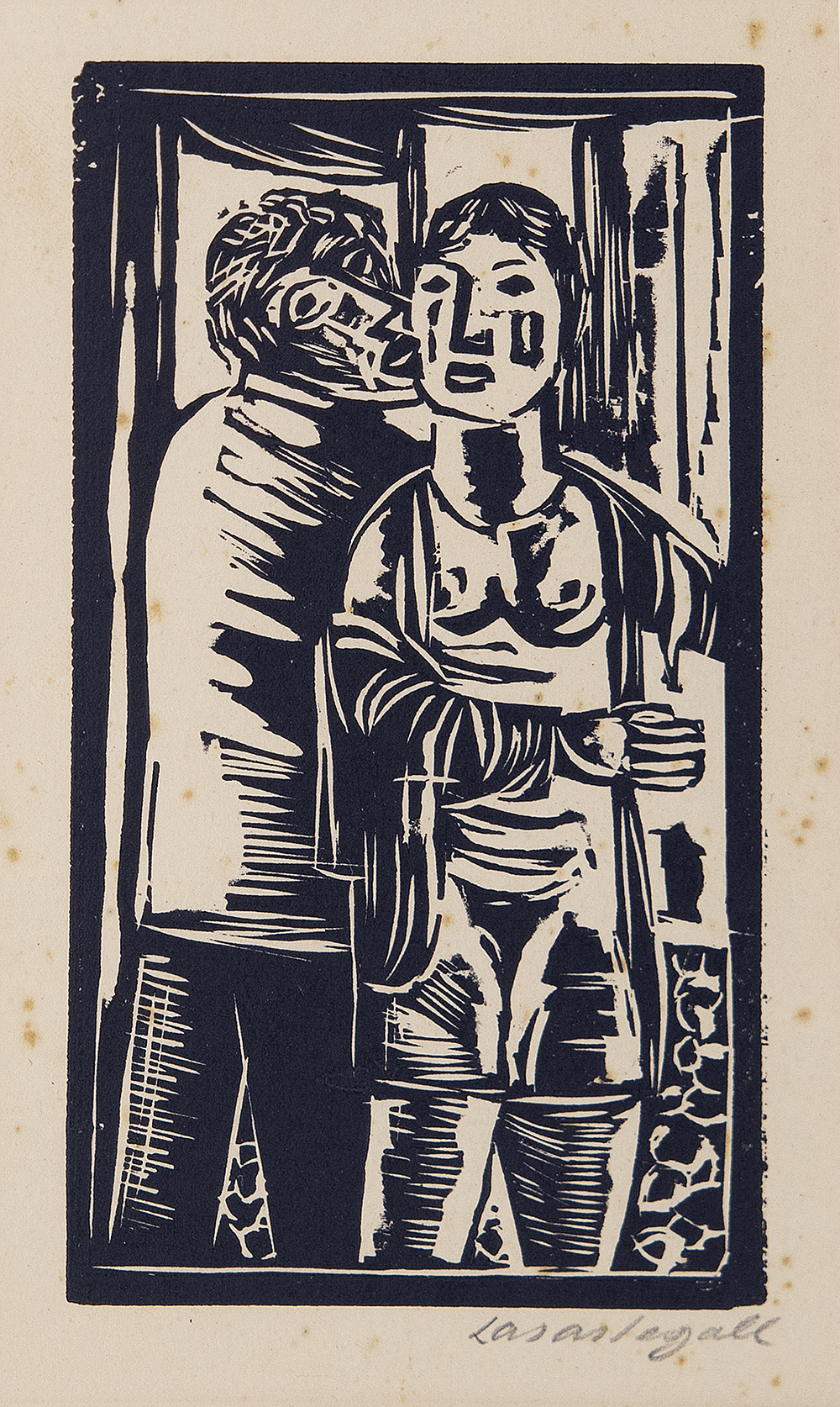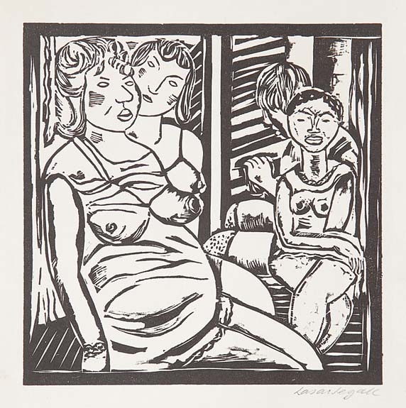 Seu primeiro contato com o Brasil ocorre em 1913, quando expõe em São Paulo e em Campinas, retornando a Dresden no mesmo ano. A pintura de Segall, sob o impacto da Primeira Guerra Mundial (1914-1918), reflete a preocupação com as injustiças sociais e o sofrimento humano. Seus quadros são estruturados por meio de planos construídos em diagonais e apresentam uma tendência à geometrização, com o predomínio de formas triangulares