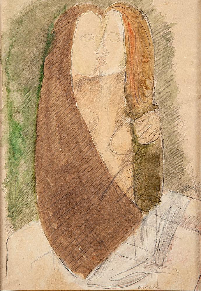Lasar Segall - Figura feminina com espelho - 14-455. Serigrafia, 70x50 cm, 1980, sem assinatura. Assinada a lápis pelo diretor do Museu Lasar Segall