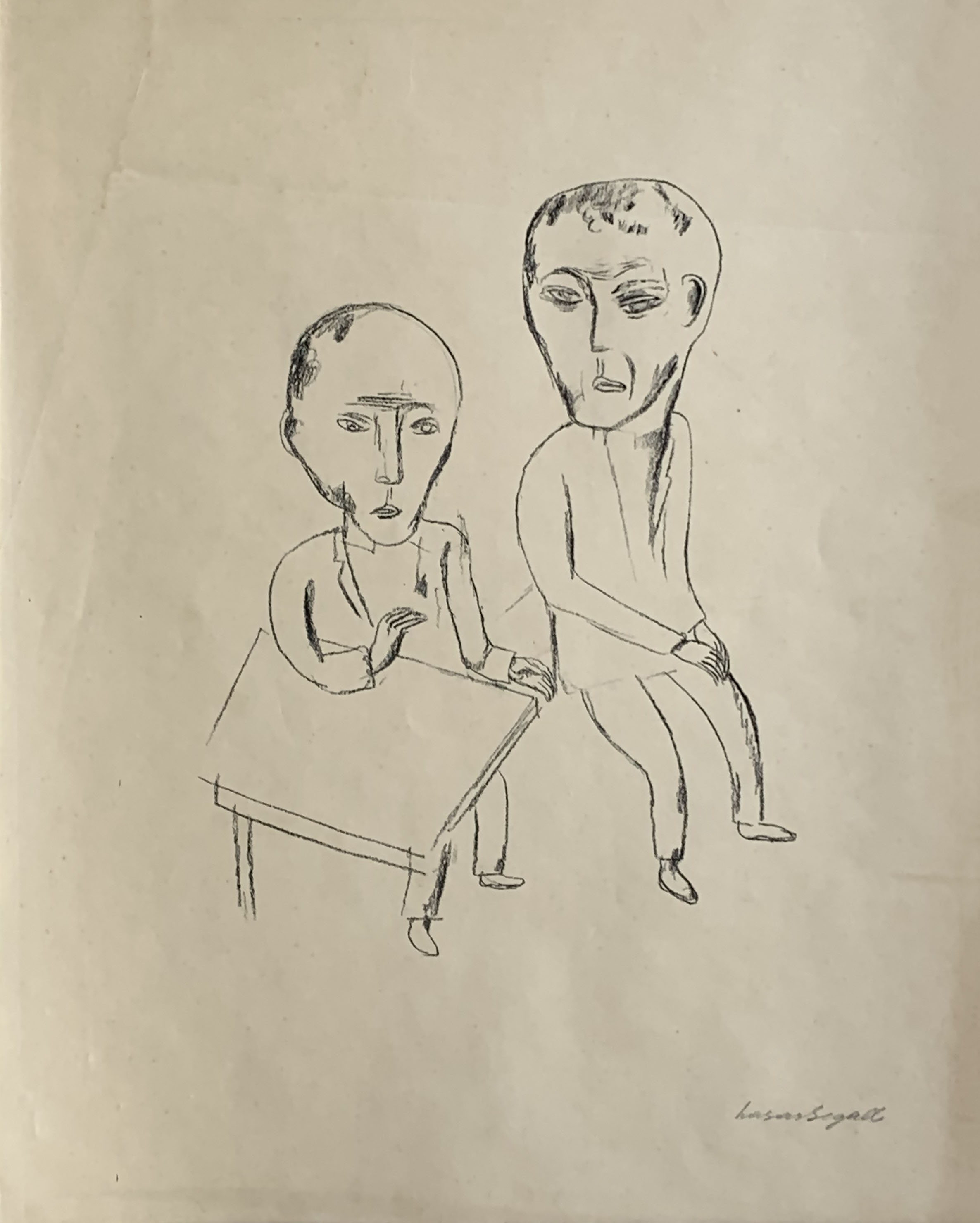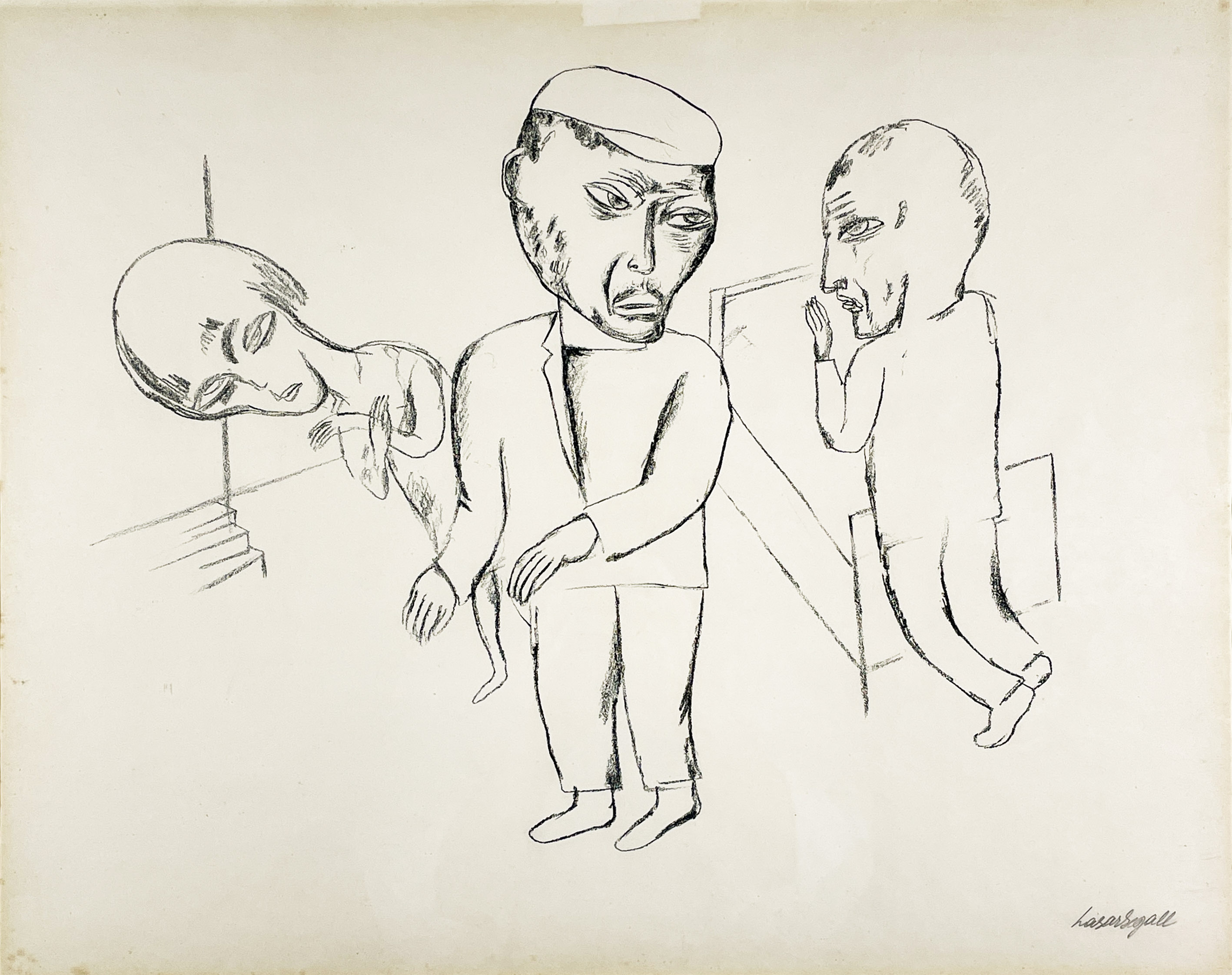 Os desenhos são importantes na produção de Segall e, como na gravura, apresentam temas recorrentes como o universo de desfavorecidos e marginalizados pela sociedade. O artista confere a suas figuras deformações expressivas e situa os personagens em espaços que os oprimem, o que gera um clima de tristeza e abandono.