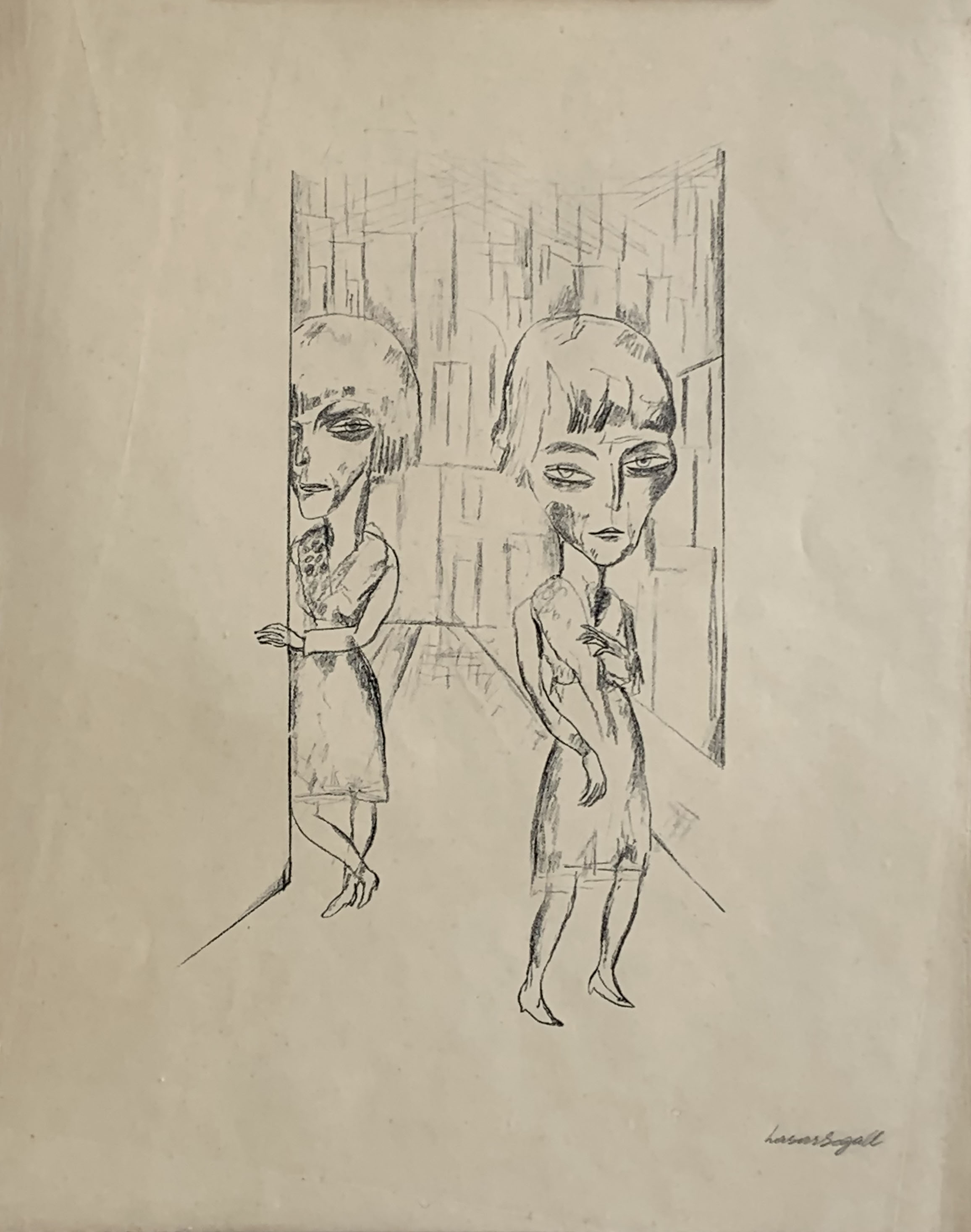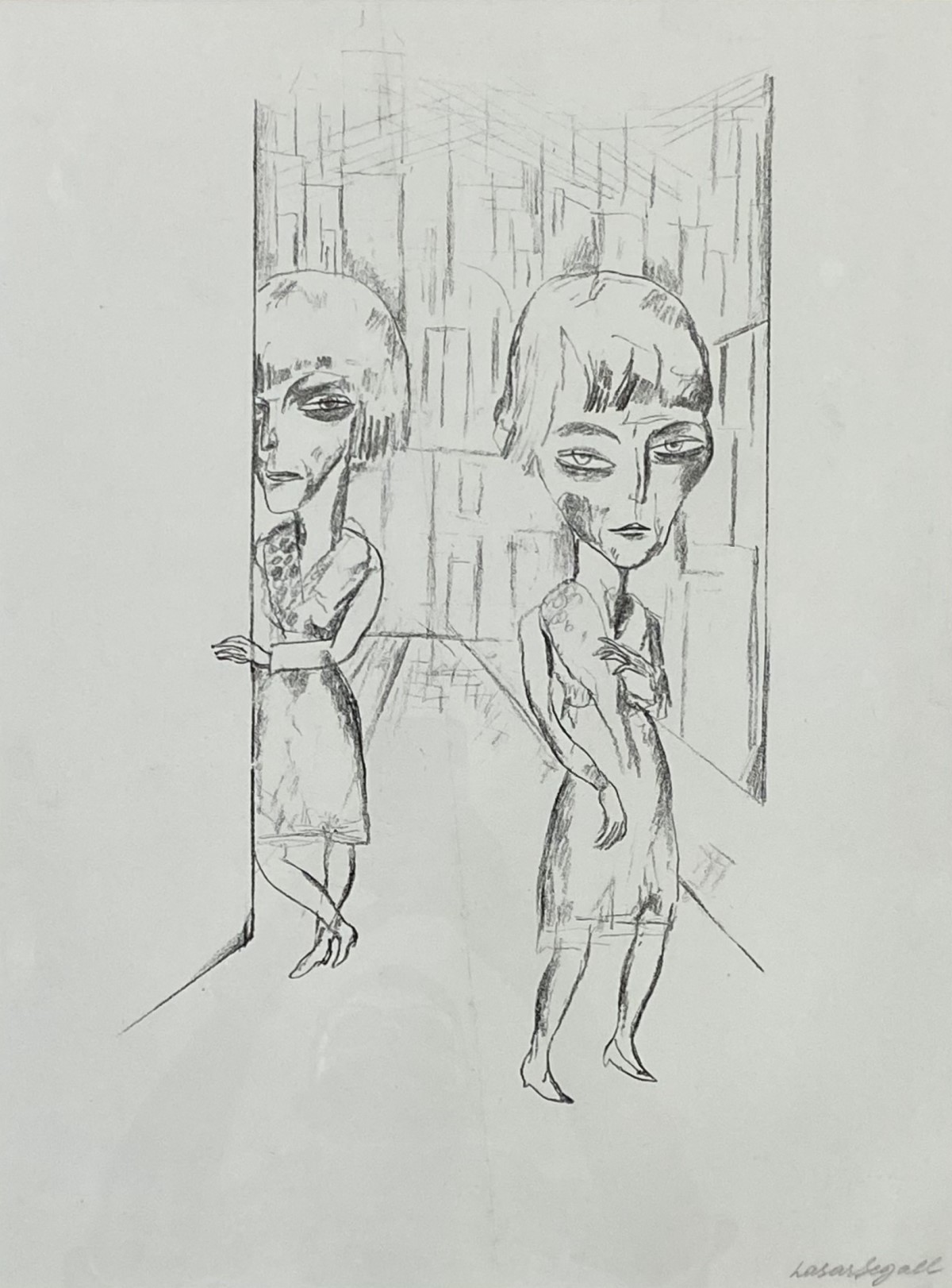 Os desenhos são importantes na produção de Segall e, como na gravura, apresentam temas recorrentes como o universo de desfavorecidos e marginalizados pela sociedade. O artista confere a suas figuras deformações expressivas e situa os personagens em espaços que os oprimem, o que gera um clima de tristeza e abandono.