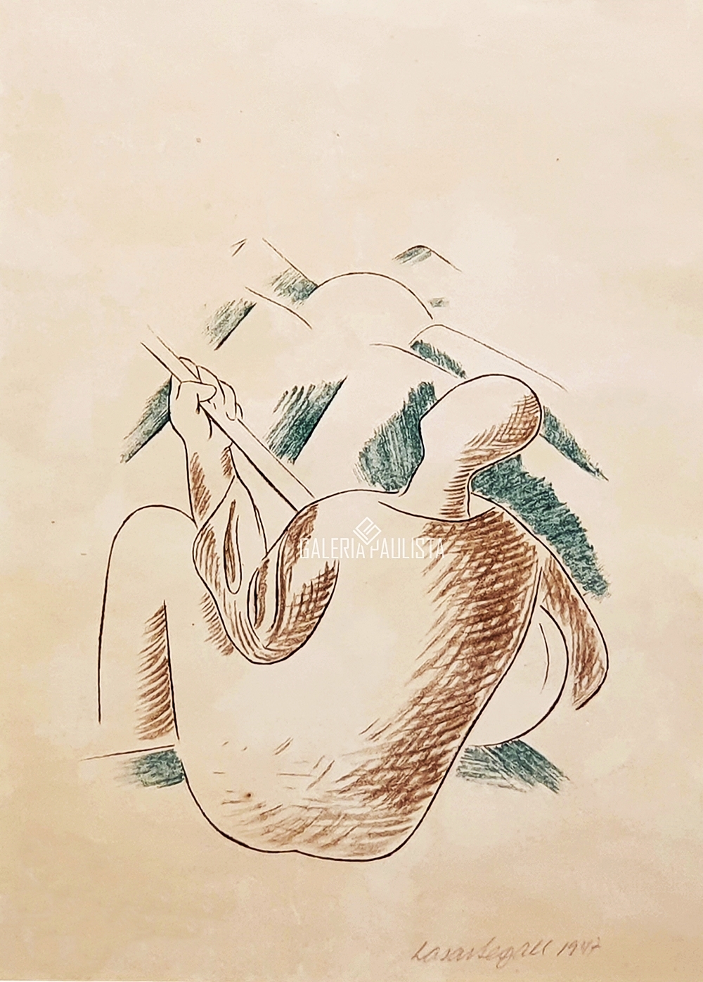 Entretanto, em comparação às cores vivas utilizadas por esses artistas, as obras de Segall têm caráter melancólico ou lírico e são trabalhadas em tonalidades sóbrias, com predomínio de ocres, cinza, negros e violetas. Em 1923, Lasar Segall muda-se para o Brasil, onde tem contato com os jovens modernistas. Nos primeiros trabalhos realizados no país, revela um deslumbramento pela luz e pelas cores tropicais. Sensibiliza-se não apenas com a paisagem mas também com o ambiente artístico brasileiro: sua produção mantém diálogo com obras de Tarsila do Amaral (1886-1973) , e de outros artistas locais. Reside em Paris entre 1928 e 1932. Nessa época, produz obras com motivos brasileiros e também utiliza temas recorrentes, como o da emigração. O colorido vibrante de suas telas dá lugar a uma luz mais pálida e mais suave. Segall passa a estruturar as composições por meio da mancha cromática e a linha não é mais tão predominante em suas obras. A partir de 1935, pinta paisagens de Campos de Jordão, de cromatismo muito refinado.