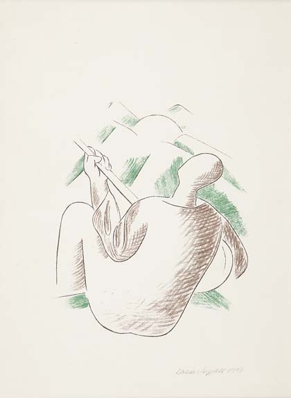 Lasar Segall - Figura feminina com espelho - 14-455. Serigrafia, 70x50 cm, 1980, sem assinatura. Assinada a lápis pelo diretor do Museu Lasar Segall