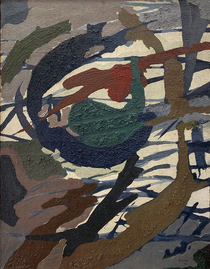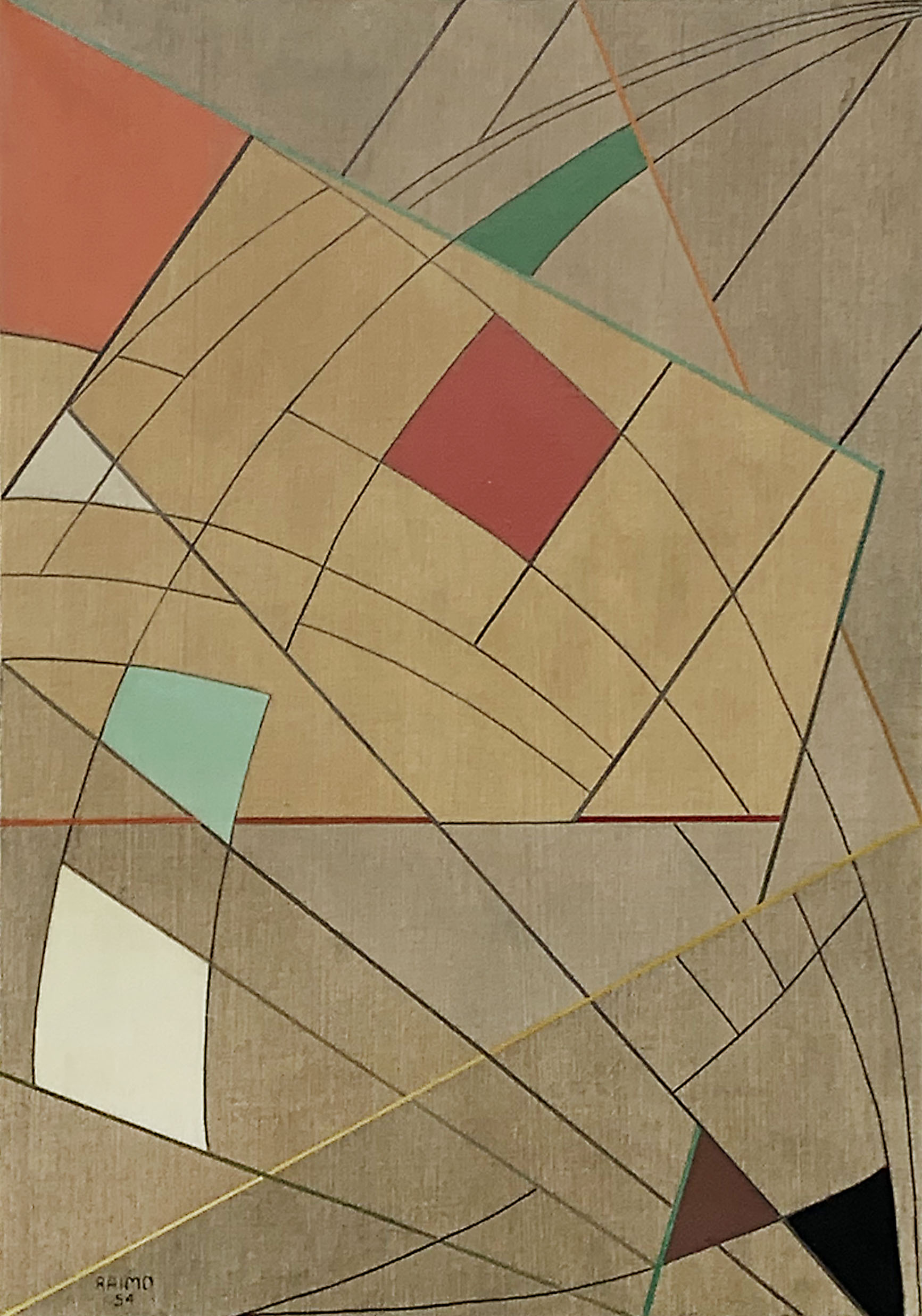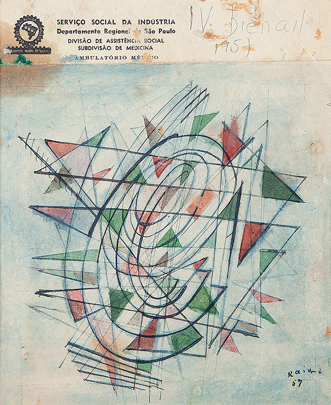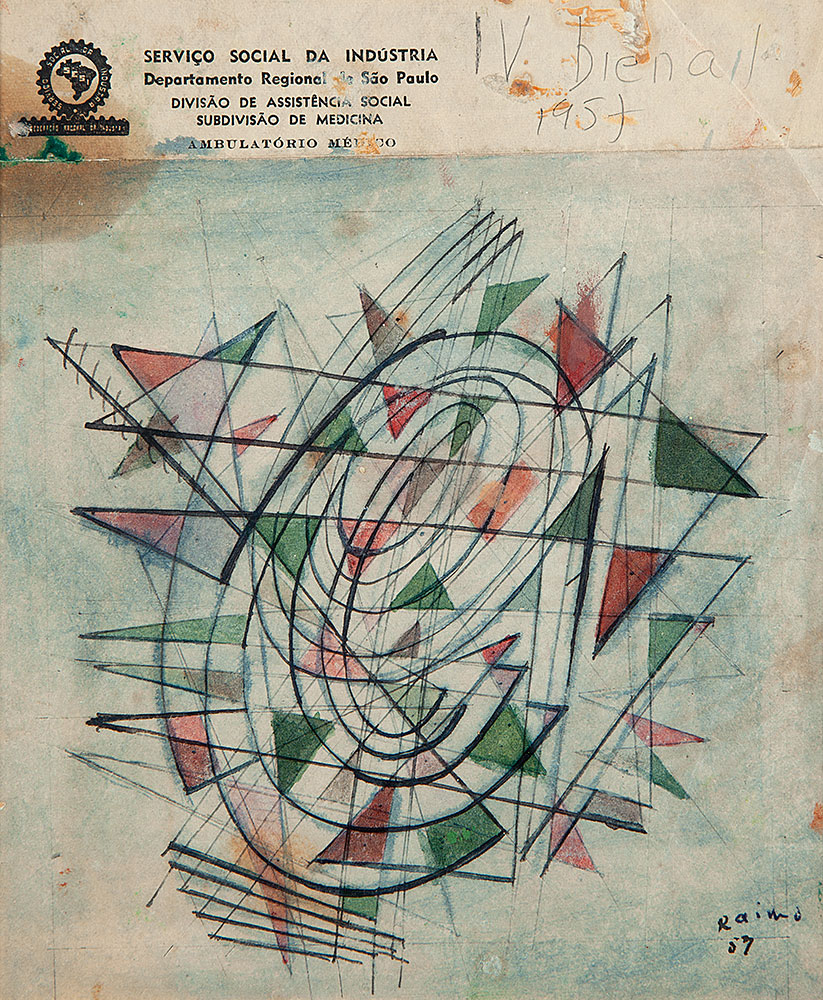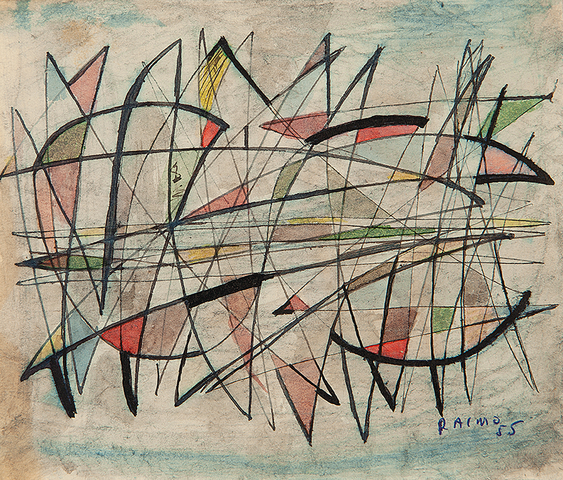 Leopoldo Francisco Raimo (Botucatu, SP, 1912 - São Paulo, SP, 2001). Pintor, gravador e médico. Muda-se com a família para a capital paulista em 1918. Durante o curso no Ginásio do Estado (de 1924 a 1930), Raimo tem aulas com o pintor acadêmico Oscar Pereira da Silva (1867-1939). Em 1931, estuda durante um semestre na Escola Paulista de Belas Artes. Escolhe a medicina como profissão, frequentando entre 1932 e 1937 a Faculdade de Medicina da Universidade de São Paulo (FMUSP) e atuando como médico desde então. Entre 1951 e 1958, participa do Atelier Abstração, onde estuda com o artista romeno Samson Flexor (1907-1971), membro da Escola de Paris, que fixara residência com a família em São Paulo em 1948. Em 1956, integra a diretoria artística do Museu de Arte Moderna de São Paulo (MAM/SP), tomando parte na elaboração do regulamento da 4ª Bienal Internacional de São Paulo. Em 1959, estuda gravura na Escola de Artesanato do MAM/SP, sendo então orientado por Lívio Abramo (1903-1992).