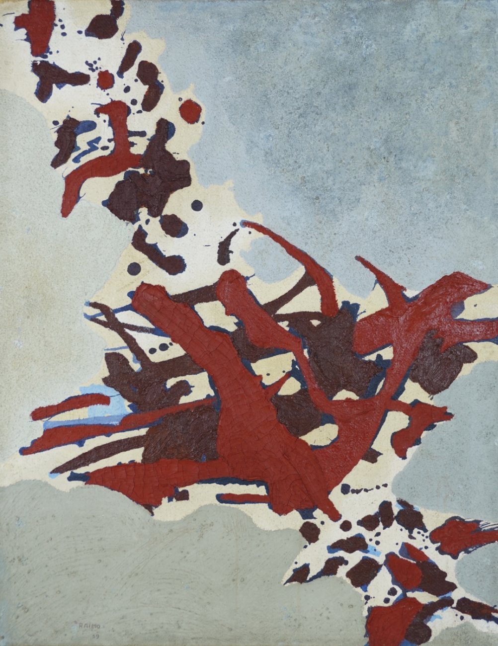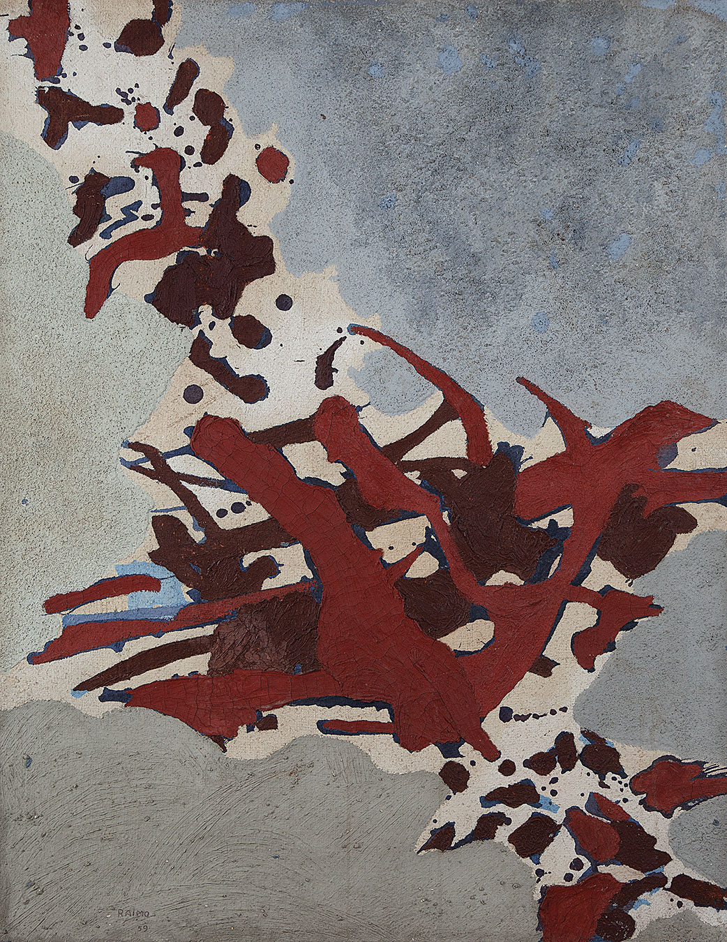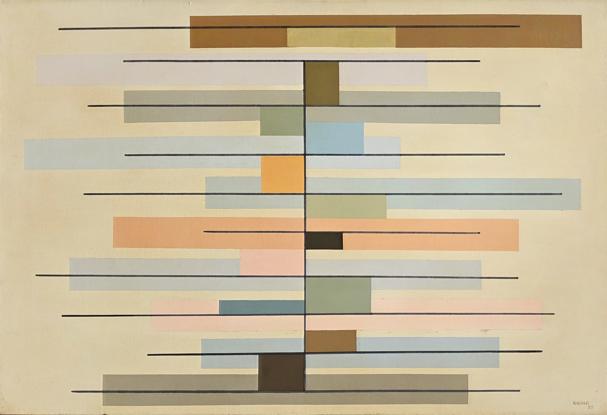 Leopoldo Francisco Raimo (Botucatu, SP, 1912 - São Paulo, SP, 2001). Pintor, gravador e médico. Muda-se com a família para a capital paulista em 1918. Durante o curso no Ginásio do Estado (de 1924 a 1930), Raimo tem aulas com o pintor acadêmico Oscar Pereira da Silva (1867-1939). Em 1931, estuda durante um semestre na Escola Paulista de Belas Artes. Escolhe a medicina como profissão, frequentando entre 1932 e 1937 a Faculdade de Medicina da Universidade de São Paulo (FMUSP) e atuando como médico desde então. Entre 1951 e 1958, participa do Atelier Abstração, onde estuda com o artista romeno Samson Flexor (1907-1971), membro da Escola de Paris, que fixara residência com a família em São Paulo em 1948. Em 1956, integra a diretoria artística do Museu de Arte Moderna de São Paulo (MAM/SP), tomando parte na elaboração do regulamento da 4ª Bienal Internacional de São Paulo. Em 1959, estuda gravura na Escola de Artesanato do MAM/SP, sendo então orientado por Lívio Abramo (1903-1992).