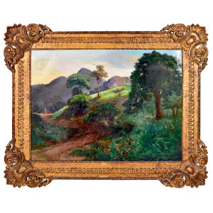 DO RESTAURO: Esse enorme obra de Levino Fanzeres chegou até nós com antigo reentelamento em cera de abelha, método usado até a década de 1960, e que se tornou obsoleto por amarelecer com o tempo. Outra decorrência dessa prática é o peso que vai afrouxando o tecido e deixando com a aparência bamba. A moldura é original com plaqueta de identificação. O chassis tinha 40% de perda de material devido a ataque de insetos xilófagos, além de empenamento, sendo assim necessária a substituição. O reentelamento foi revertido e o excesso de cera eliminado em mesa térmica à vacuo. Um tecido novo foi aderido com BEVA Gel. houve necessidade de enxertos de tecido, obturações e nivelamentos pontuais nas beiradas que estiveram em contato com a madeira e os cupins, bem como na haste central de sustentação do chassis. (necessário devido a dimensão da tela, para evitar futuros empenamentos. Uma das beiradas carcomidas, certamente é onde ficava a assinatura, ficando a plaqueta original da moldura como referência, bem como a procedência.