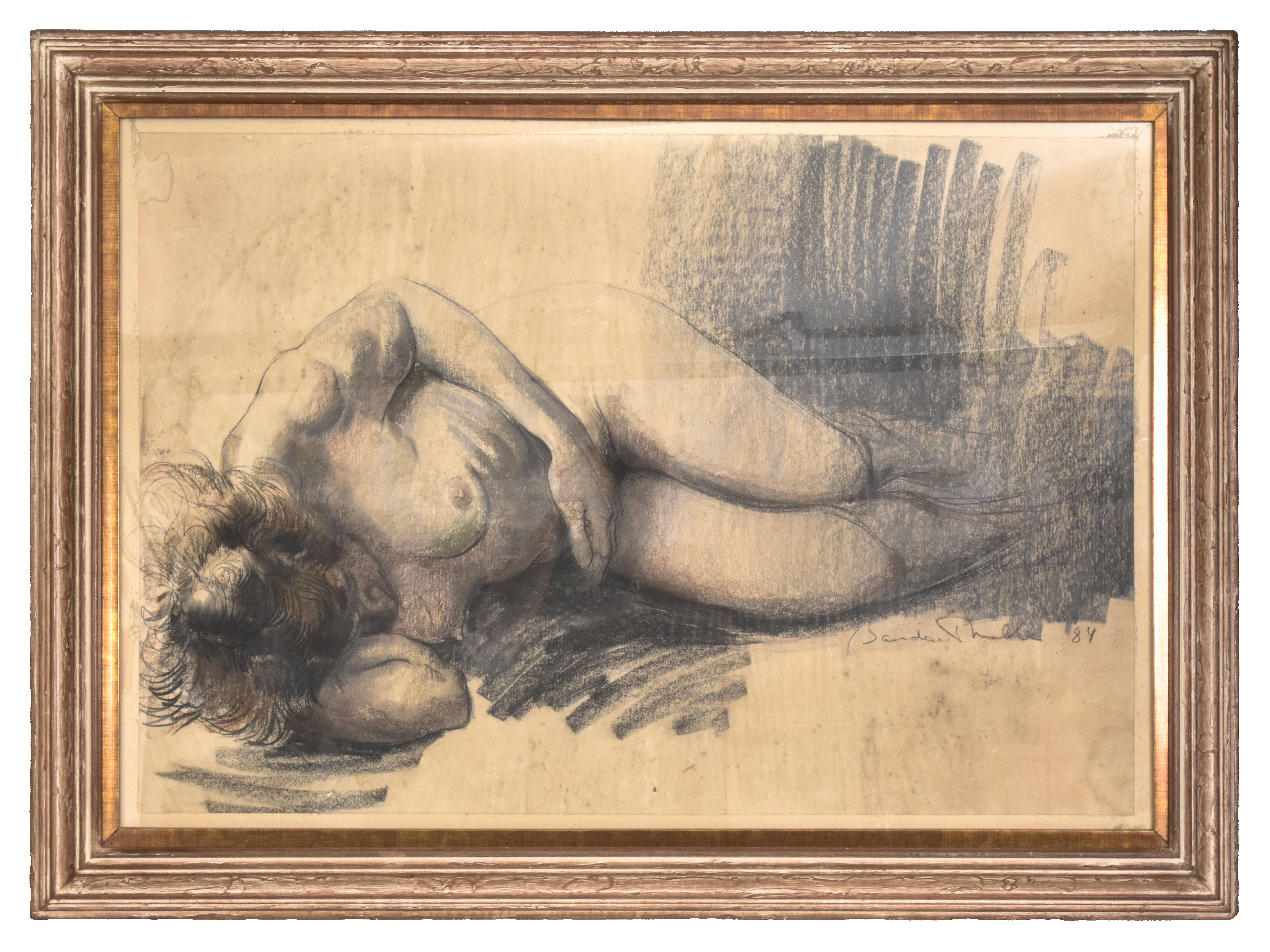 LYDIO BANDEIRA DE MELLO (1929-2023) 100 X 70 cm./ 116 x 86 cm. "MODELO VIVO" DESENHO A CARVÃO. 1984 (...) "Morreu na terça-feira (14/11/2023) Lydio Bandeira de Mello, pintor e professor universitário, aos 94 anos. Natural de Leopoldina (MG), frequentou entre 1947 a 1951 a então Escola Nacional de Belas Artes (ENBA), no Rio, que a partir de 1965 passaria a se chamar Escola de Belas Artes (EBA-UFRJ). Lá, tornou-se monitor da cadeira de desenho de modelo vivo e assistente do pintor Marques Júnior (1887- 1960). Em 1961, conquistou o prêmio de viagem ao exterior, seguindo para a Itália, onde viveu por três anos e pintou dois afrescos para a igreja do Santuário de Poggio Bustone, no Vale de Rieti. De volta ao Brasil, venceu, em 1969, o concurso para a elaboração do projeto do grande mural para nova sede da Caixa Econômica Federal, que ocuparia o número 25 da Avenida Almirante Barroso, no Centro do Rio. O painel, representando o povo brasileiro e sua cultura, era composto por duas superfícies planas, de 32 metros de comprimento por 4 metros de altura, num total de 250 m². A complexa instalação da estrutura, composta por 80 placas, utilizava um sistema de pinos e parafusos, presos a buchas na parede. O painel permaneceu como um dos trabalhos mais conhecidos de Bandeira de Mello, até o final do ano passado, quando foi desmontado para que o espaço, já entregue pelo banco, pudesse ser ocupado por seu novo locatário, a rede de utilidades domésticas Casas da Mamãe. Atualmente, a Caixa Cultural do Rio está em uma nova sede, no número 38 da Rua do Passeio, também no Centro. Em 2010, o artista, que completara 80 anos no ano anterior, foi homenageado com a panorâmica "Bandeira de Mello - Eu existo assim", que passou pelas sedes da Caixa Cultural do Rio, São Paulo, Salvador e Curitiba. O pintor seguia dando aulas de desenho de modelo vivo em seu ateliê, em Laranjeiras, Zona Sul do Rio." FONTE: https://oglobo.globo.com/cultura/artes-visuais/noticia/2023/11/14/morre-lydio-bandeira-de-mello-autor-do-painel-da-antiga-caixa-cultural-aos-94-anos.ghtml