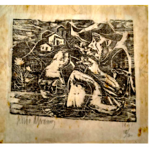 Livio Abramo xilogravura sobre papel de arroz 17 x 17cm "Sem Titulo" ass. CIE datada 1941 T. 15/30