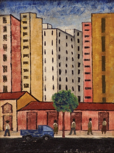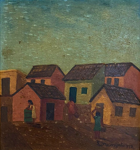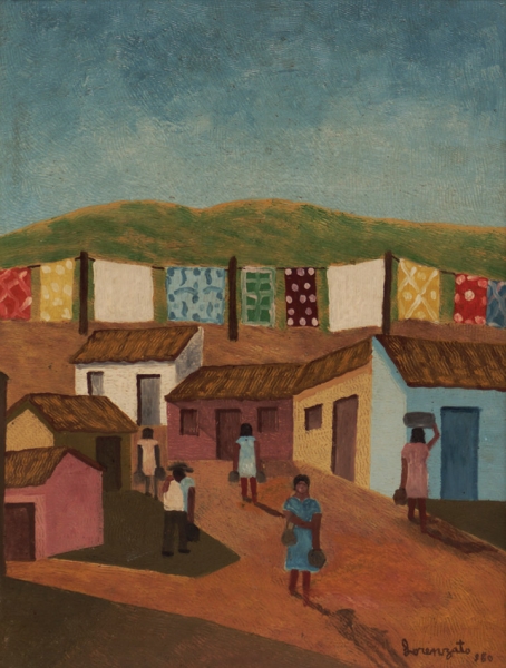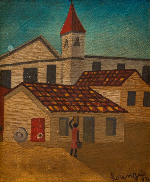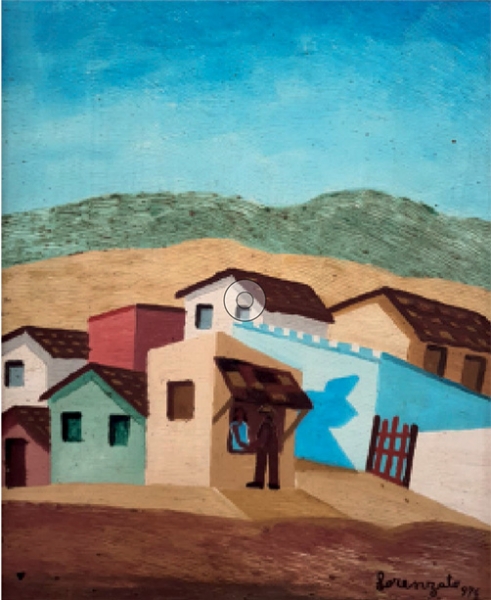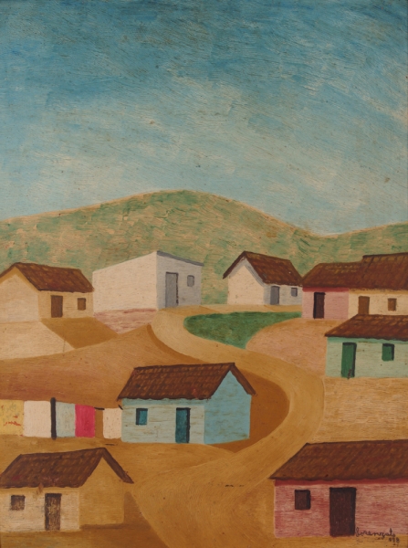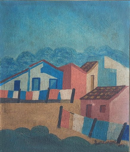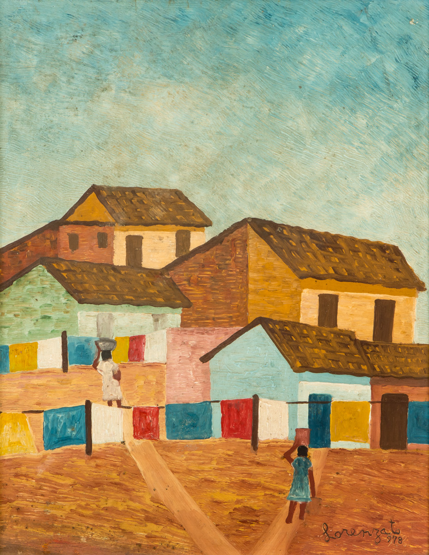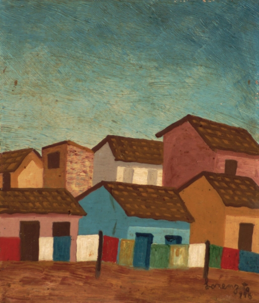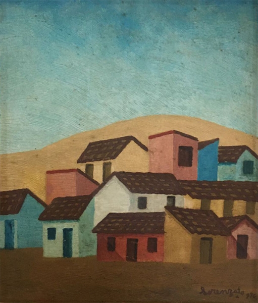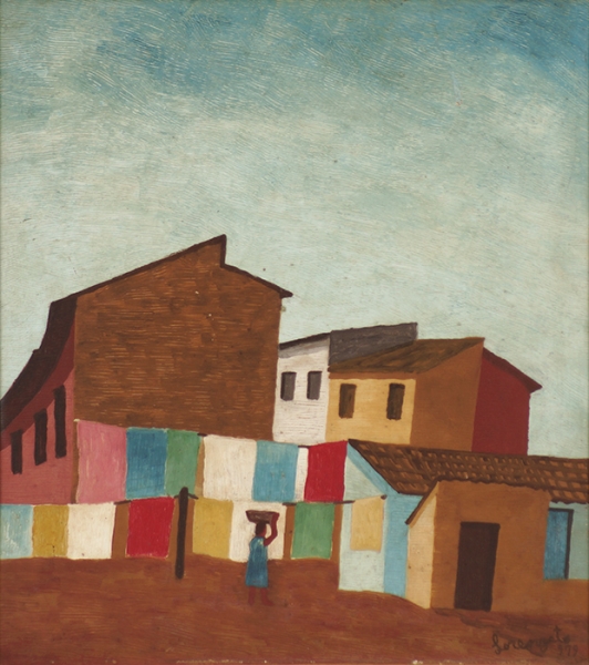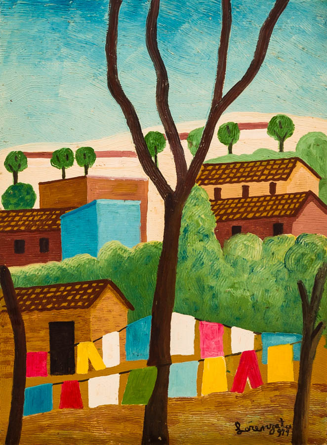 Lorenzato - Casas e varal - 45 x 30 cm - Óleo sobre eucatex - Assinatura canto inferior direito e Data 1978