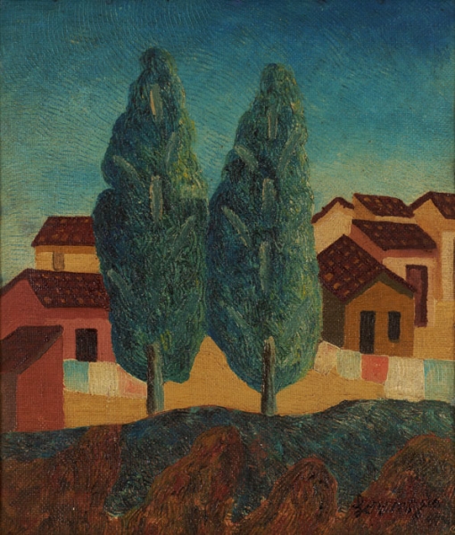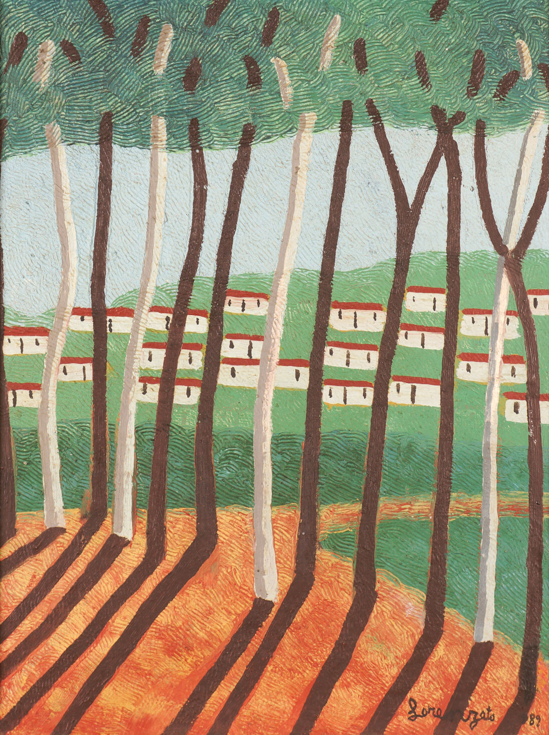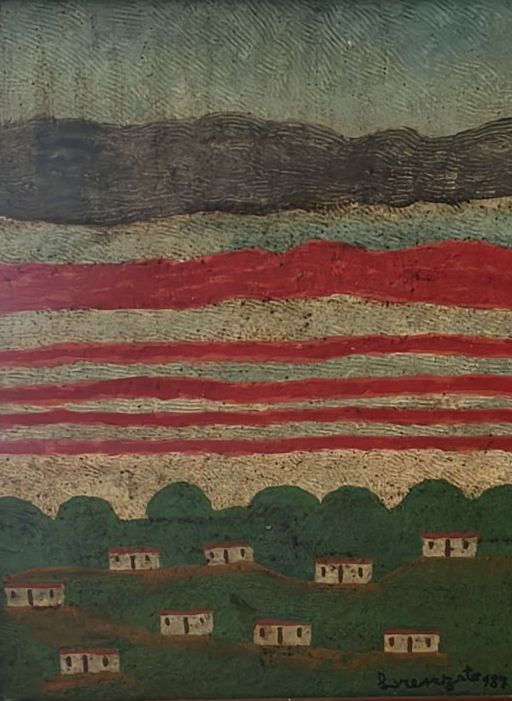 Lorenzato - Casas e varal - 45 x 30 cm - Óleo sobre eucatex - Assinatura canto inferior direito e Data 1978