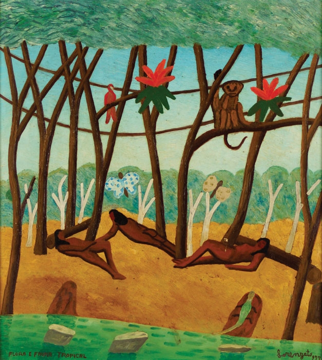 Amadeu Luciano Lorenzato (Belo Horizonte MG 1900 - idem 1995). Pintor e escultor. Começa a trabalhar como ajudante de pintor em 1910, exercendo o ofício até 1920, quando se muda com a família para Arsiero (Itália), onde trabalha como pintor de paredes na reconstrução da cidade. Em 1925, matricula-se na Reale Accademia delle Arti, em Vicenza. No ano seguinte, muda-se para Roma, onde permanece dois anos em companhia do pintor e cartazista holandês Cornelius Keesman, com quem desenha nos fins de semana. Em 1928, ambos decidem viajar de bicicleta ao leste europeu, passando por Áustria, Eslováquia, Hungria, Bulgária e Turquia. Finda a viagem em 1930, o artista separa-se de Cornelius e muda para Paris, e trabalha na montagem dos pavilhões da Exposição Internacional Colonial. Um ano depois, retorna à Itália onde fica até abril de 1948, data em que volta ao Brasil. Trabalha, em 1949, na montagem dos estandes para a Exposição de Indústria e Comércio, realizada no Hotel Quitandinha, de Petrópolis, depois, muda-se com a família para Belo Horizonte e exerce o ofício de pintor de paredes até 1956. Impedido de continuar na construção civil devido a um acidente, dedica-se integralmente à pintura. Em meados da década de 1960, apresenta alguns trabalhos ao crítico Sérgio Maldonado, que, por sua vez, apresenta-o a Palhano Júnior, organizador da primeira exposição individual de seus trabalhos, realizada em 1967.