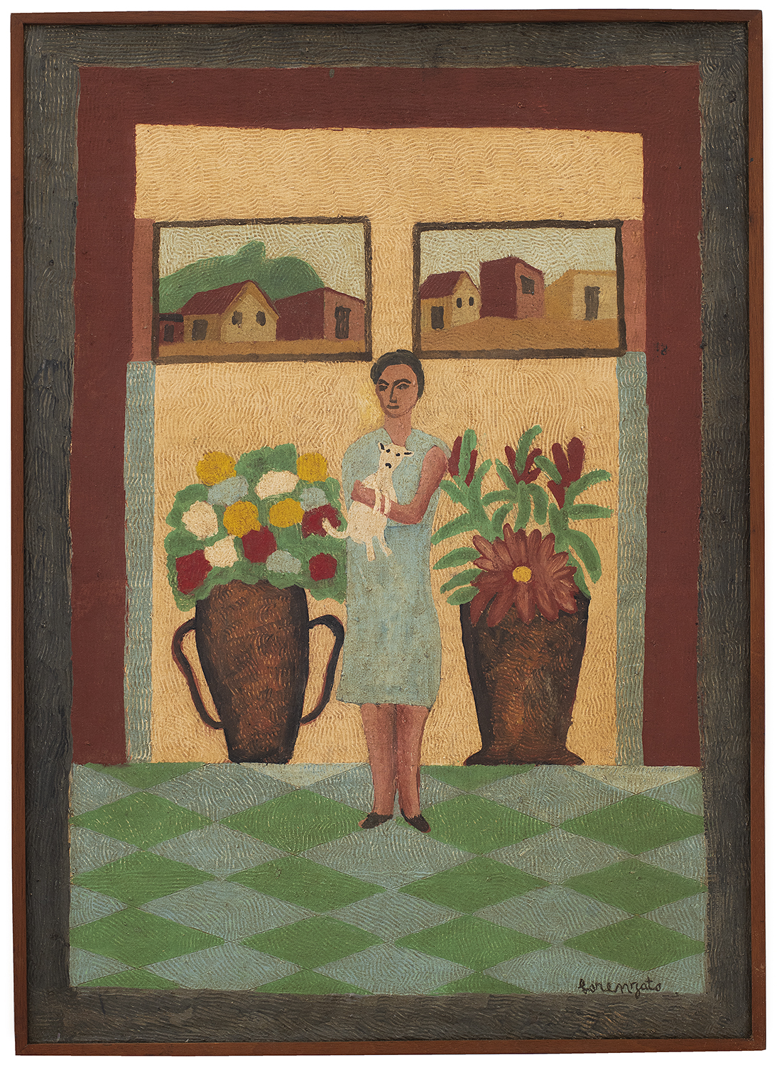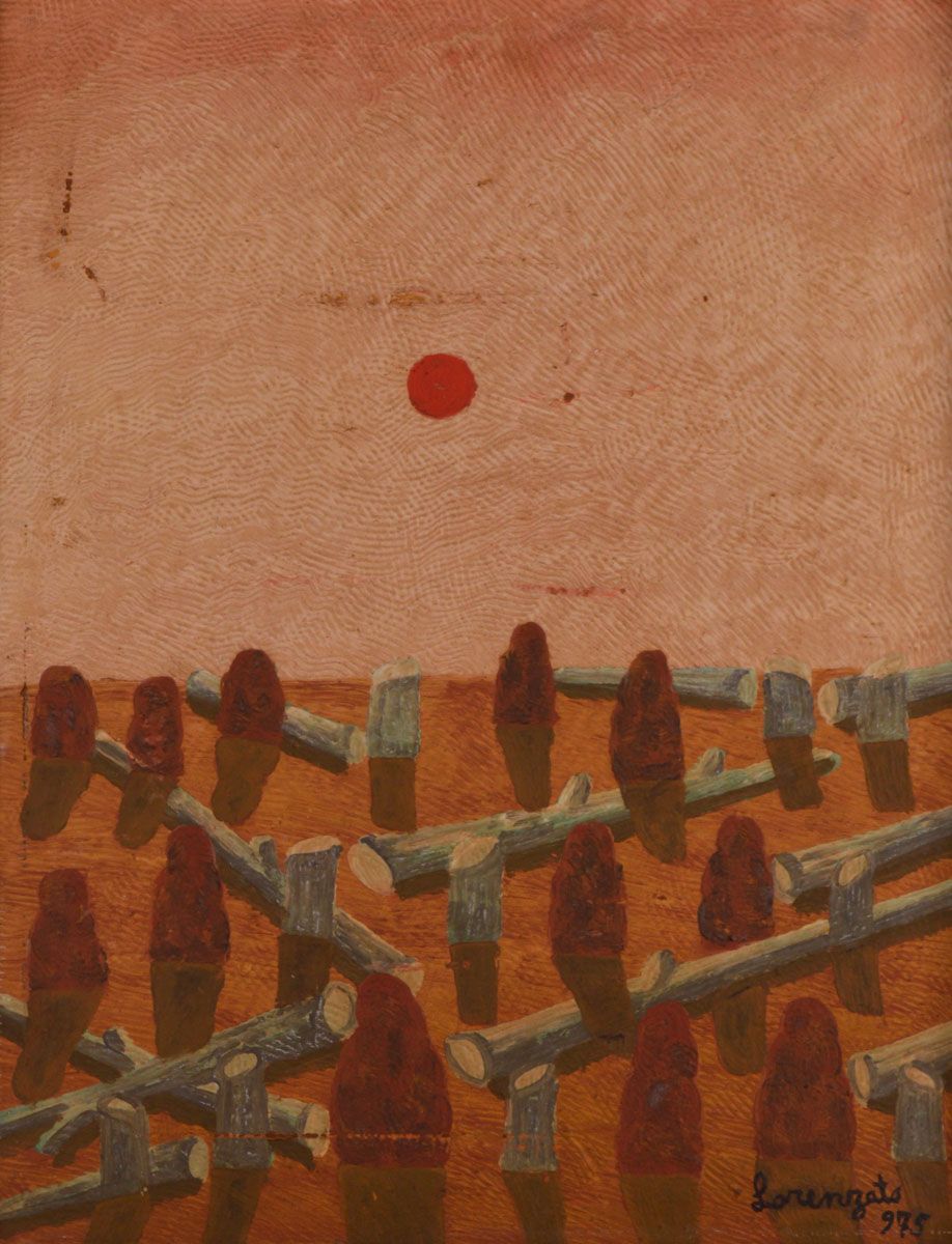 Amadeu Luciano Lorenzato (Belo Horizonte MG 1900 - idem 1995). Pintor e escultor. Começa a trabalhar como ajudante de pintor em 1910, exercendo o ofício até 1920, quando se muda com a família para Arsiero (Itália), onde trabalha como pintor de paredes na reconstrução da cidade. Em 1925, matricula-se na Reale Accademia delle Arti, em Vicenza. No ano seguinte, muda-se para Roma, onde permanece dois anos em companhia do pintor e cartazista holandês Cornelius Keesman, com quem desenha nos fins de semana. Em 1928, ambos decidem viajar de bicicleta ao leste europeu, passando por Áustria, Eslováquia, Hungria, Bulgária e Turquia. Finda a viagem em 1930, o artista separa-se de Cornelius e muda para Paris, e trabalha na montagem dos pavilhões da Exposição Internacional Colonial. Um ano depois, retorna à Itália onde fica até abril de 1948, data em que volta ao Brasil. Trabalha, em 1949, na montagem dos estandes para a Exposição de Indústria e Comércio, realizada no Hotel Quitandinha, de Petrópolis, depois, muda-se com a família para Belo Horizonte e exerce o ofício de pintor de paredes até 1956. Impedido de continuar na construção civil devido a um acidente, dedica-se integralmente à pintura. Em meados da década de 1960, apresenta alguns trabalhos ao crítico Sérgio Maldonado, que, por sua vez, apresenta-o a Palhano Júnior, organizador da primeira exposição individual de seus trabalhos, realizada em 1967.