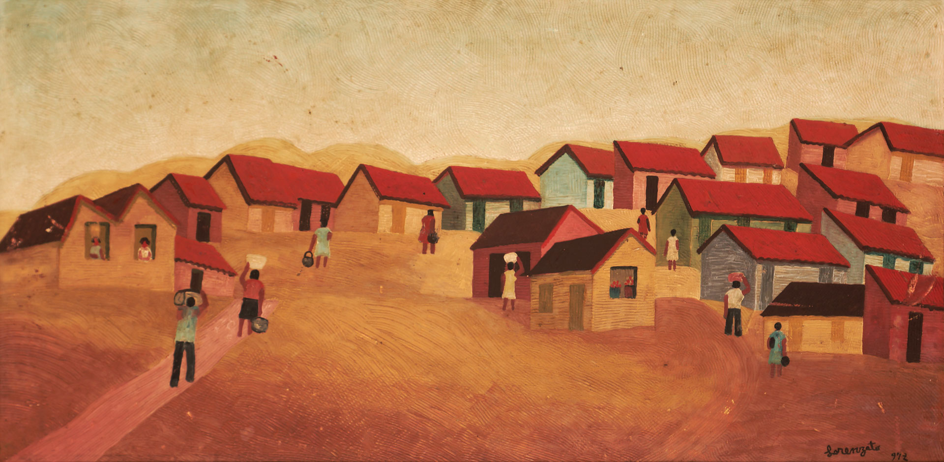 Lorenzato - Casas e varal - 45 x 30 cm - Óleo sobre eucatex - Assinatura canto inferior direito e Data 1978