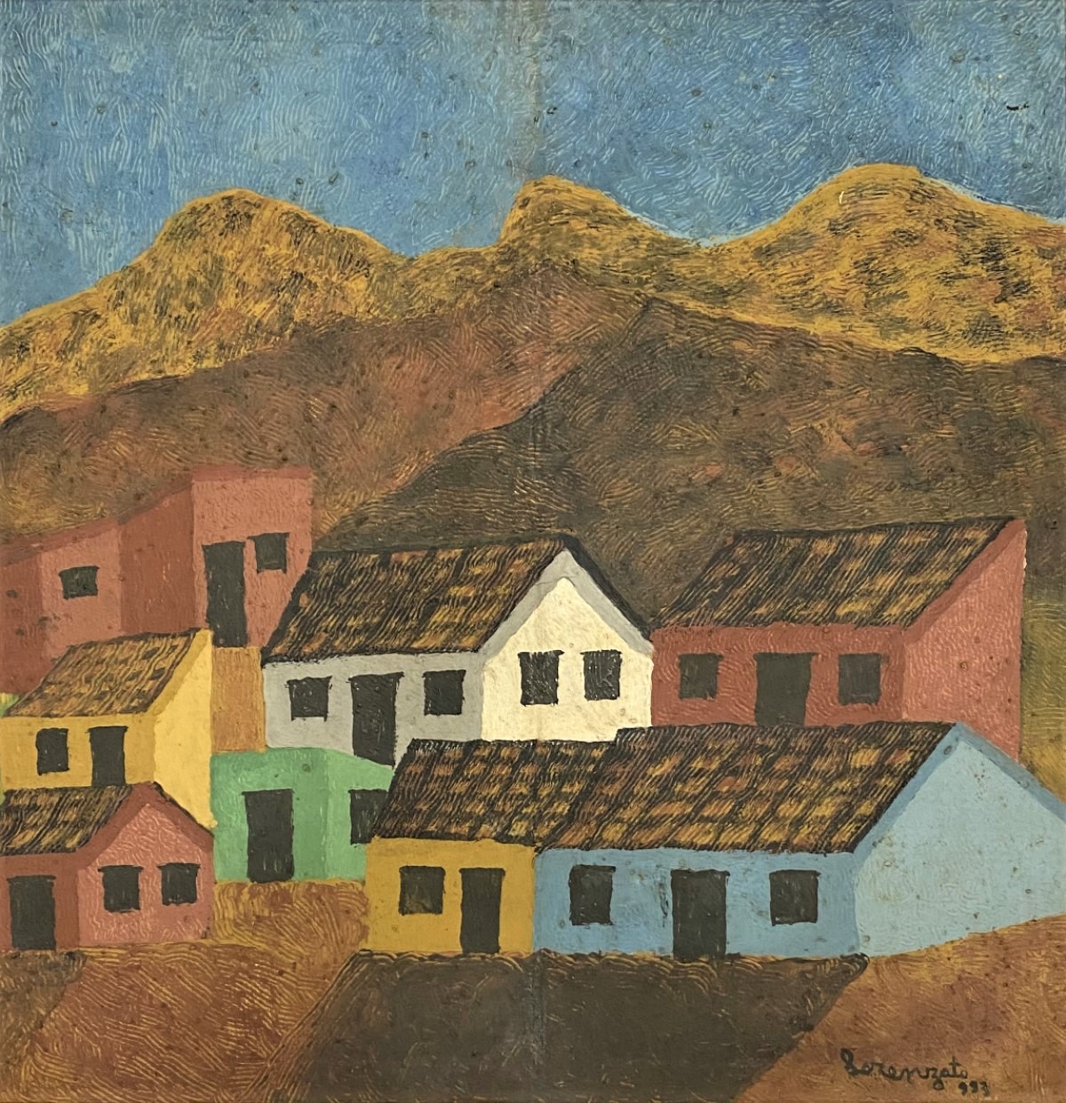 Lorenzato - Casas e varal - 45 x 30 cm - Óleo sobre eucatex - Assinatura canto inferior direito e Data 1978