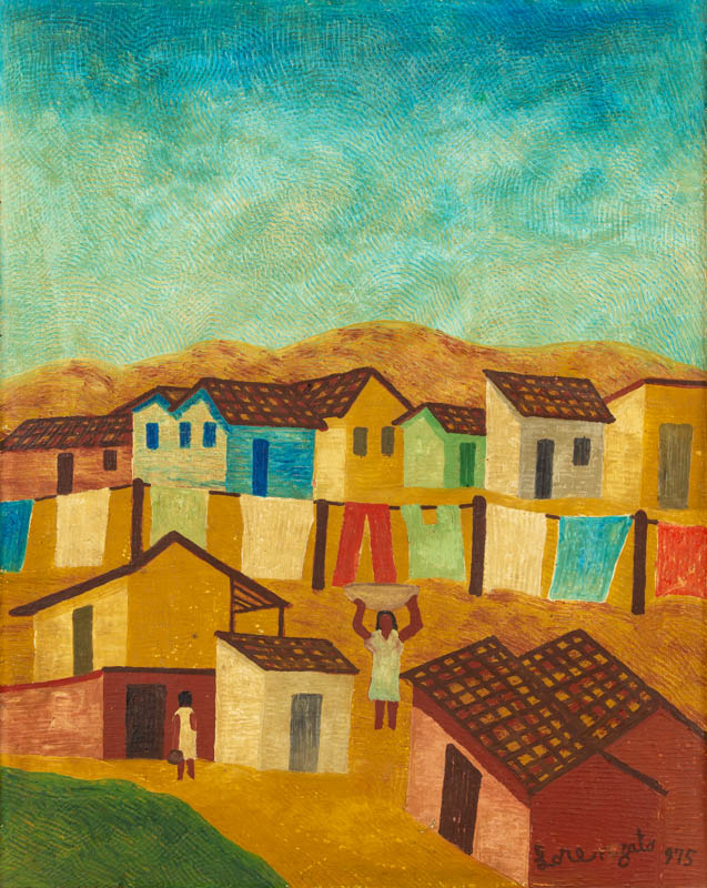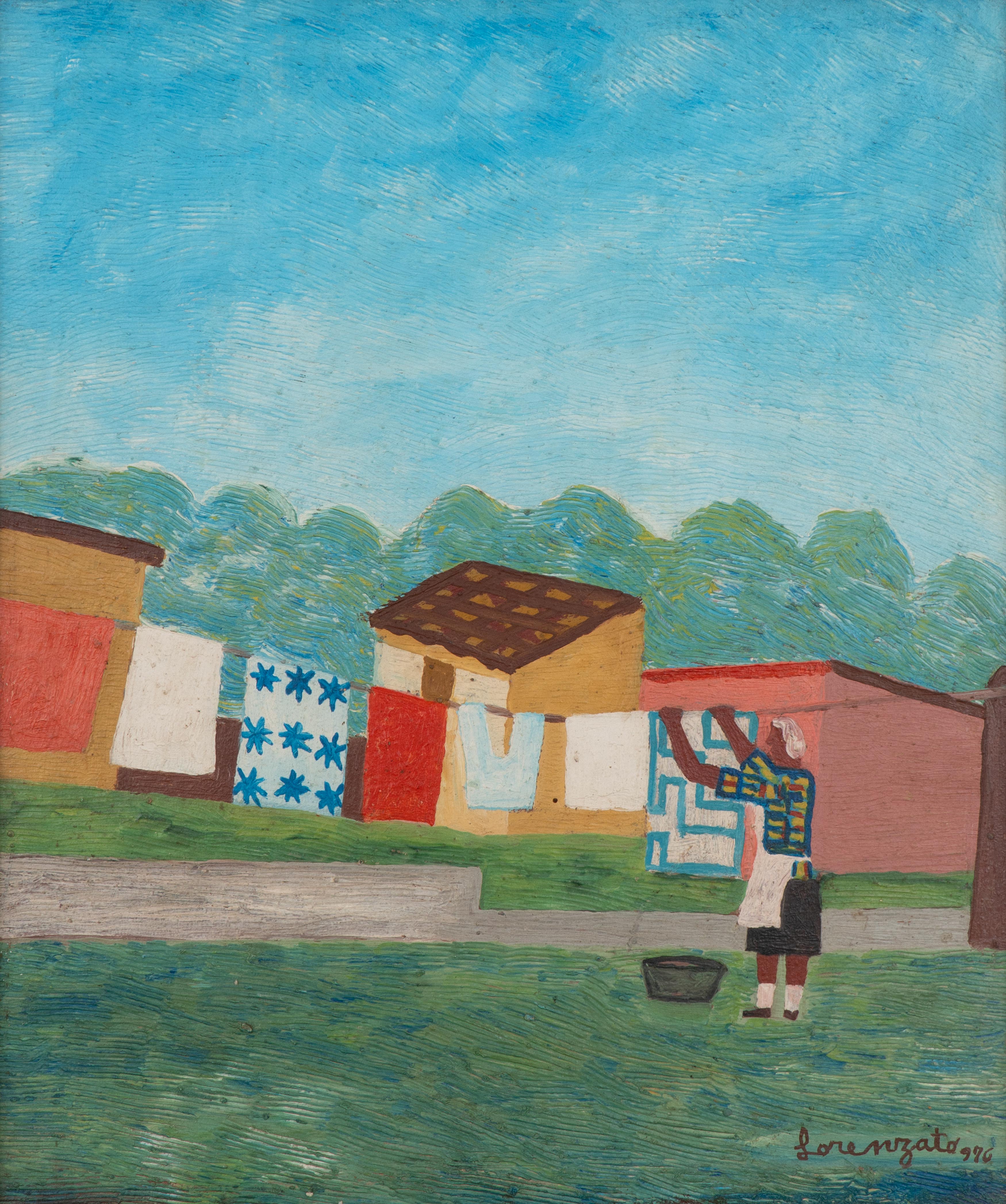 Lorenzato - Casas e varal - 45 x 30 cm - Óleo sobre eucatex - Assinatura canto inferior direito e Data 1978