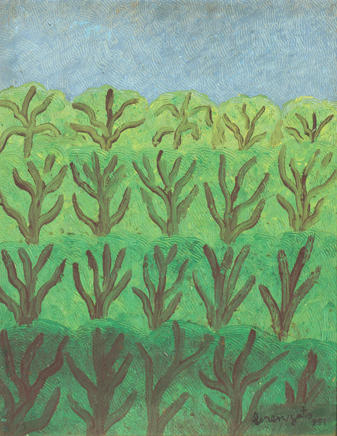 Amadeu Luciano Lorenzato (Belo Horizonte MG 1900 - idem 1995). Pintor e escultor. Começa a trabalhar como ajudante de pintor em 1910, exercendo o ofício até 1920, quando se muda com a família para Arsiero (Itália), onde trabalha como pintor de paredes na reconstrução da cidade. Em 1925, matricula-se na Reale Accademia delle Arti, em Vicenza. No ano seguinte, muda-se para Roma, onde permanece dois anos em companhia do pintor e cartazista holandês Cornelius Keesman, com quem desenha nos fins de semana. Em 1928, ambos decidem viajar de bicicleta ao leste europeu, passando por Áustria, Eslováquia, Hungria, Bulgária e Turquia. Finda a viagem em 1930, o artista separa-se de Cornelius e muda para Paris, e trabalha na montagem dos pavilhões da Exposição Internacional Colonial. Um ano depois, retorna à Itália onde fica até abril de 1948, data em que volta ao Brasil. Trabalha, em 1949, na montagem dos estandes para a Exposição de Indústria e Comércio, realizada no Hotel Quitandinha, de Petrópolis, depois, muda-se com a família para Belo Horizonte e exerce o ofício de pintor de paredes até 1956. Impedido de continuar na construção civil devido a um acidente, dedica-se integralmente à pintura. Em meados da década de 1960, apresenta alguns trabalhos ao crítico Sérgio Maldonado, que, por sua vez, apresenta-o a Palhano Júnior, organizador da primeira exposição individual de seus trabalhos, realizada em 1967.