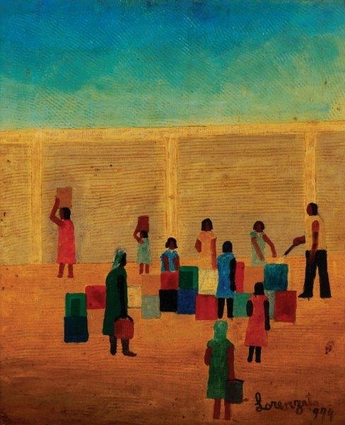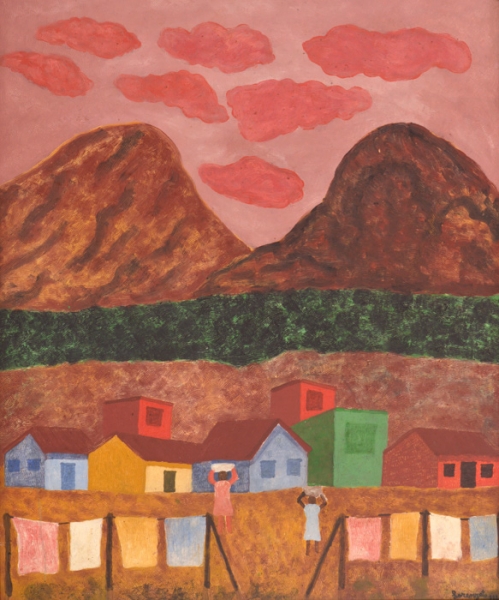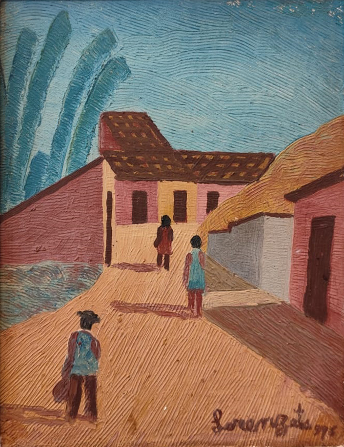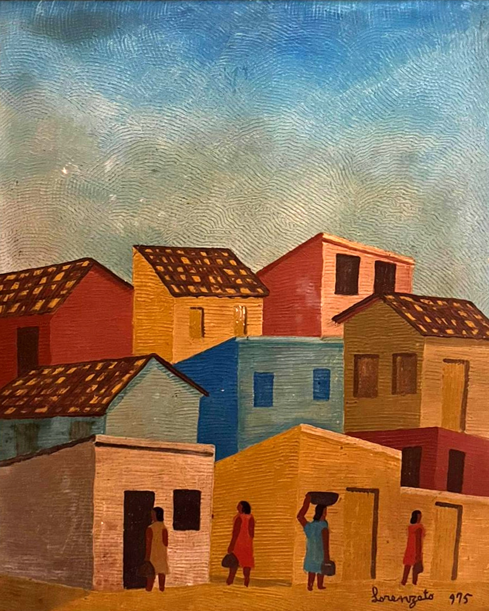 Lorenzato - Casas e varal - 45 x 30 cm - Óleo sobre eucatex - Assinatura canto inferior direito e Data 1978