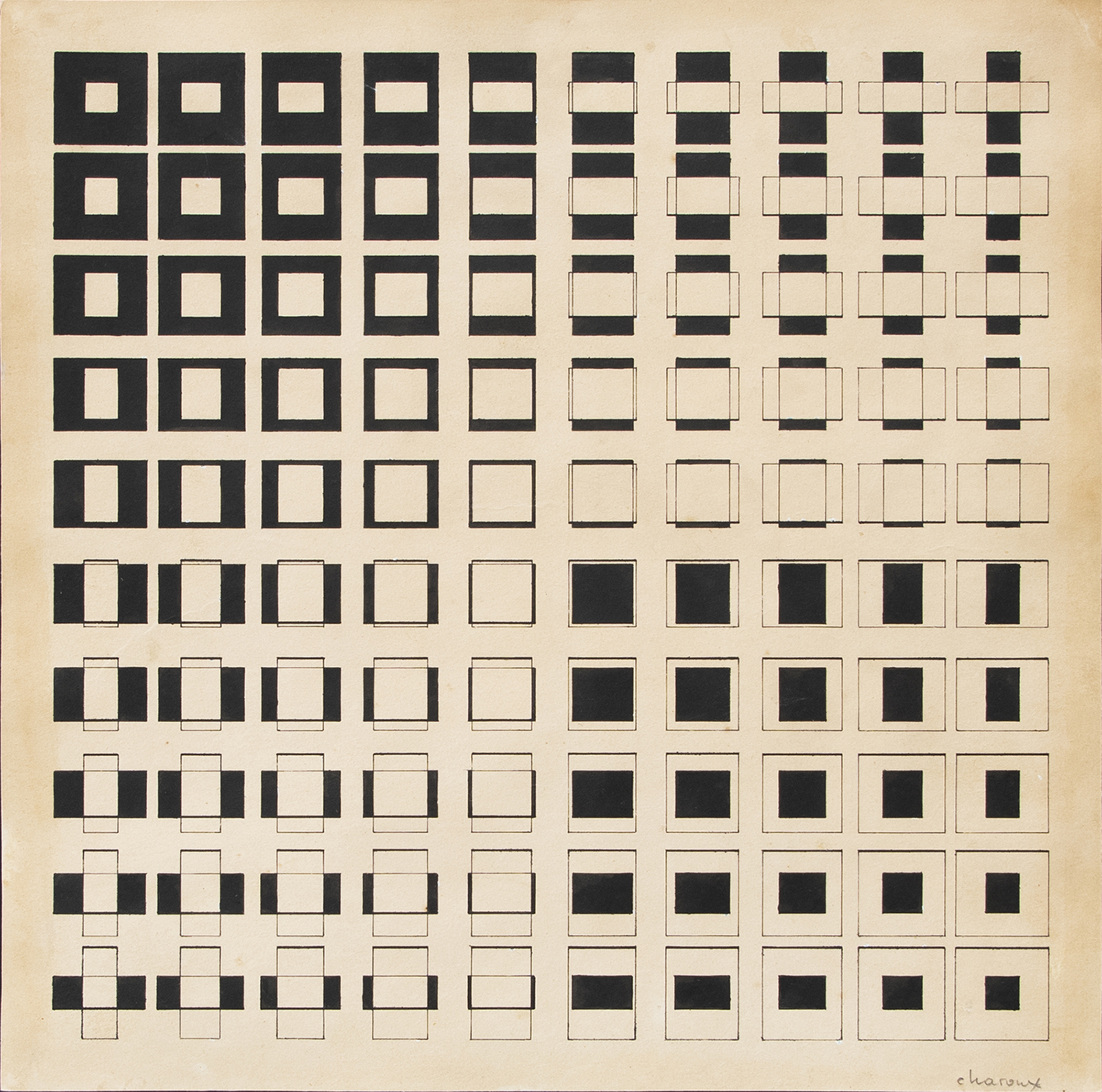 LOTHAR CHAROUX, Permutação - serigrafia 9/25 - 34x34 cm - 1974 - Ass. Inf. Dir.