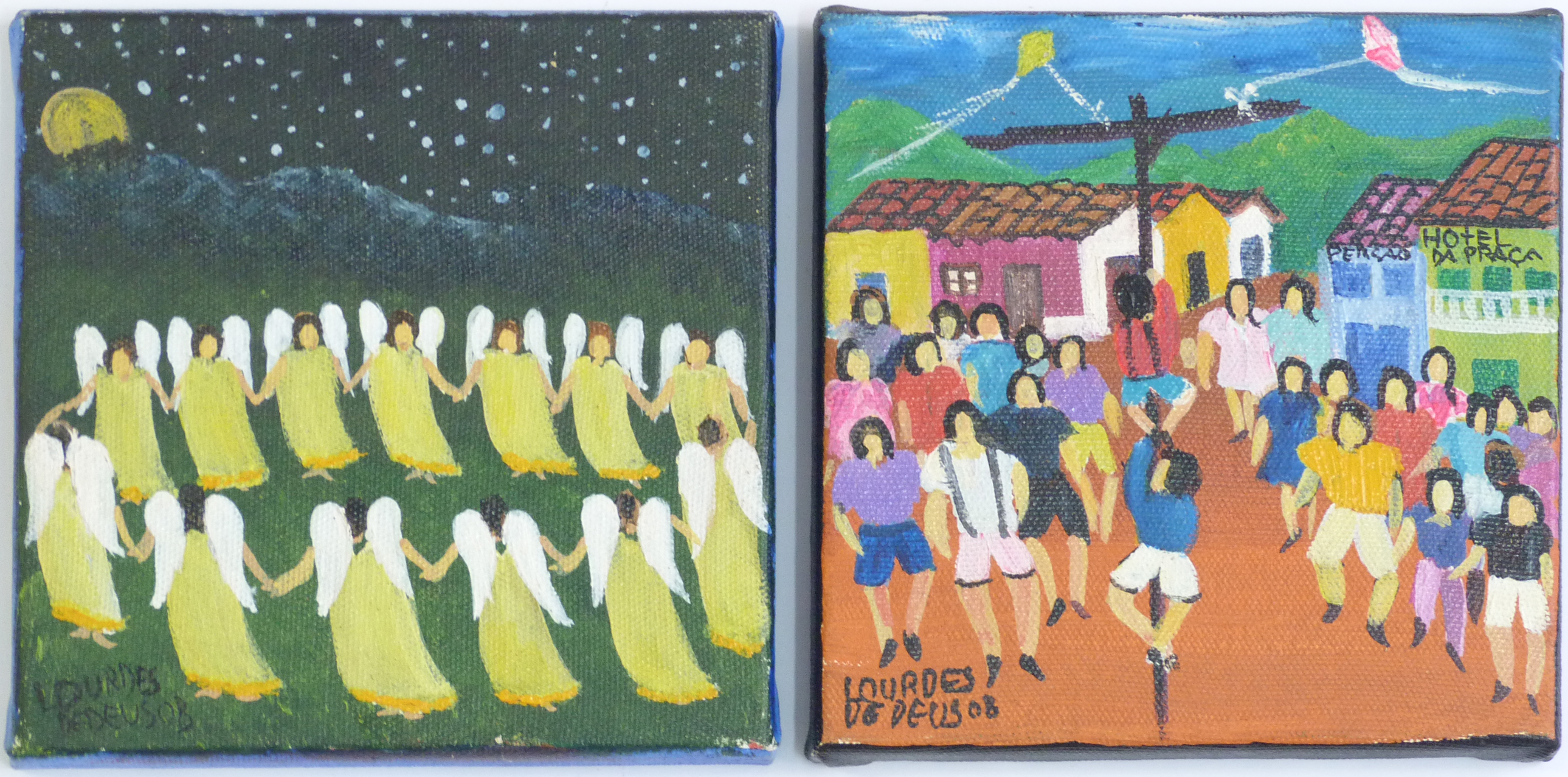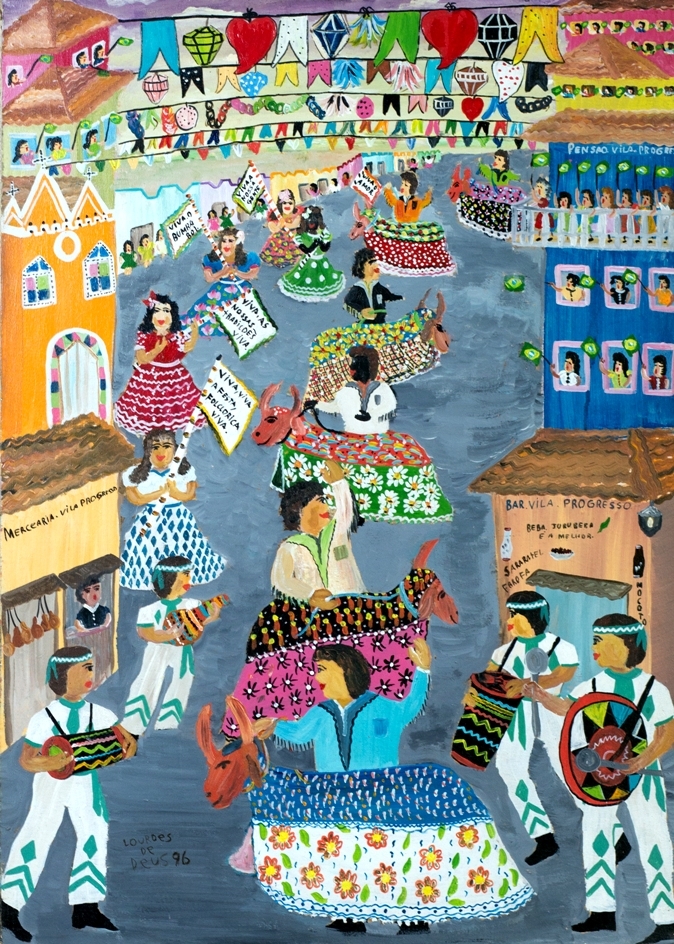 Autodidata, a pernambucana Lourdes de Deus nasceu em 1959. Percorreu o Brasil com seu marido e incentivador Waldomiro de Deus, um dos mais consagrados artistas populares brasileiros. Lourdes pinta com romantismo e com muitas cores o cotidiano e as manifestações folclóricas nacionais, como a festa de São João, a folia de Reis e o bumba-meu-boi. Algumas telas da artista estão expostas no Museu de Arte do Parlamento de São Paulo, na Assembleia Legislativa do Estado de São Paulo, no Museu Internacional de Arte Naïf de Quebec (Canadá) e em diversas residências no Brasil e na Europa, cujas obras foram adquiridas por turistas.
