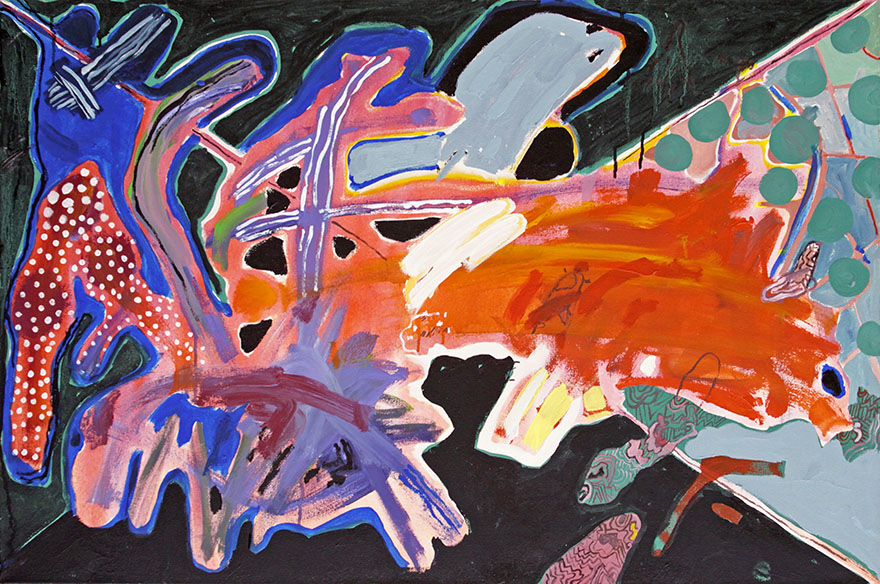 Luiz Aquila - A pintura e o Rebelde, 2012 - Acrílica e cartão colado sobre tela, assinado inferior direito; assinado, datado e titulado no verso. - 40 x 60 cm.