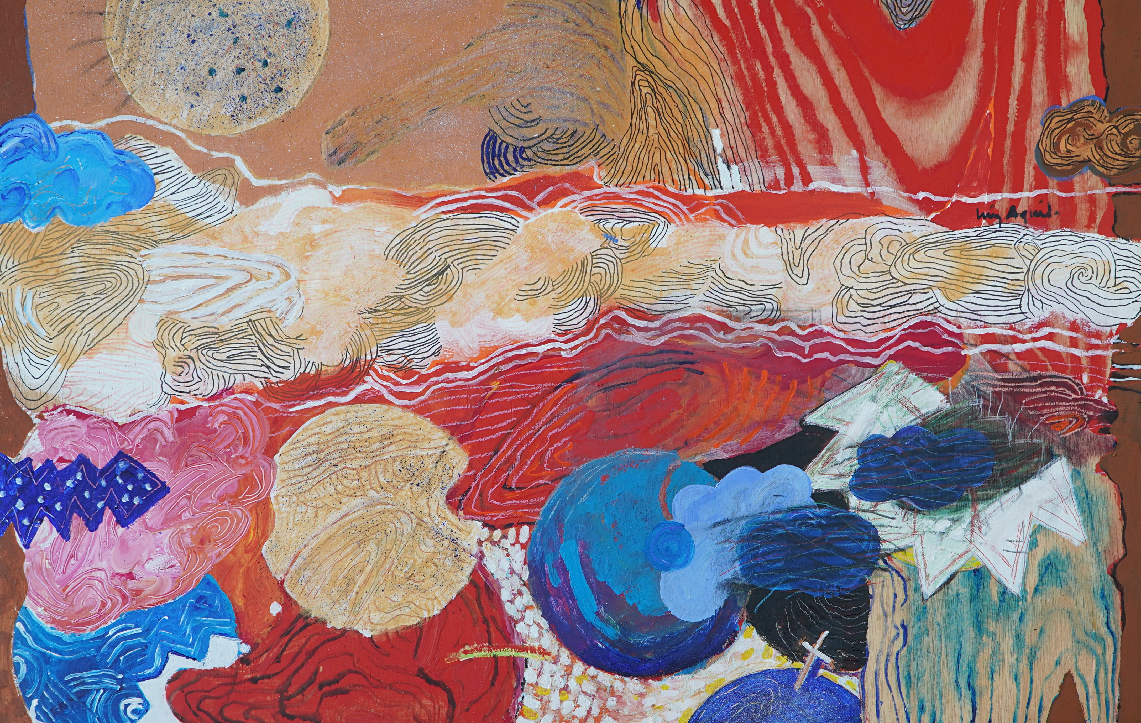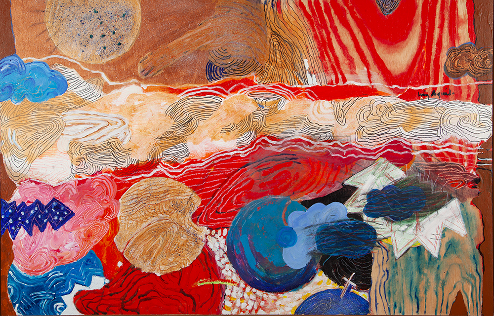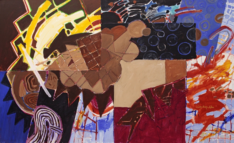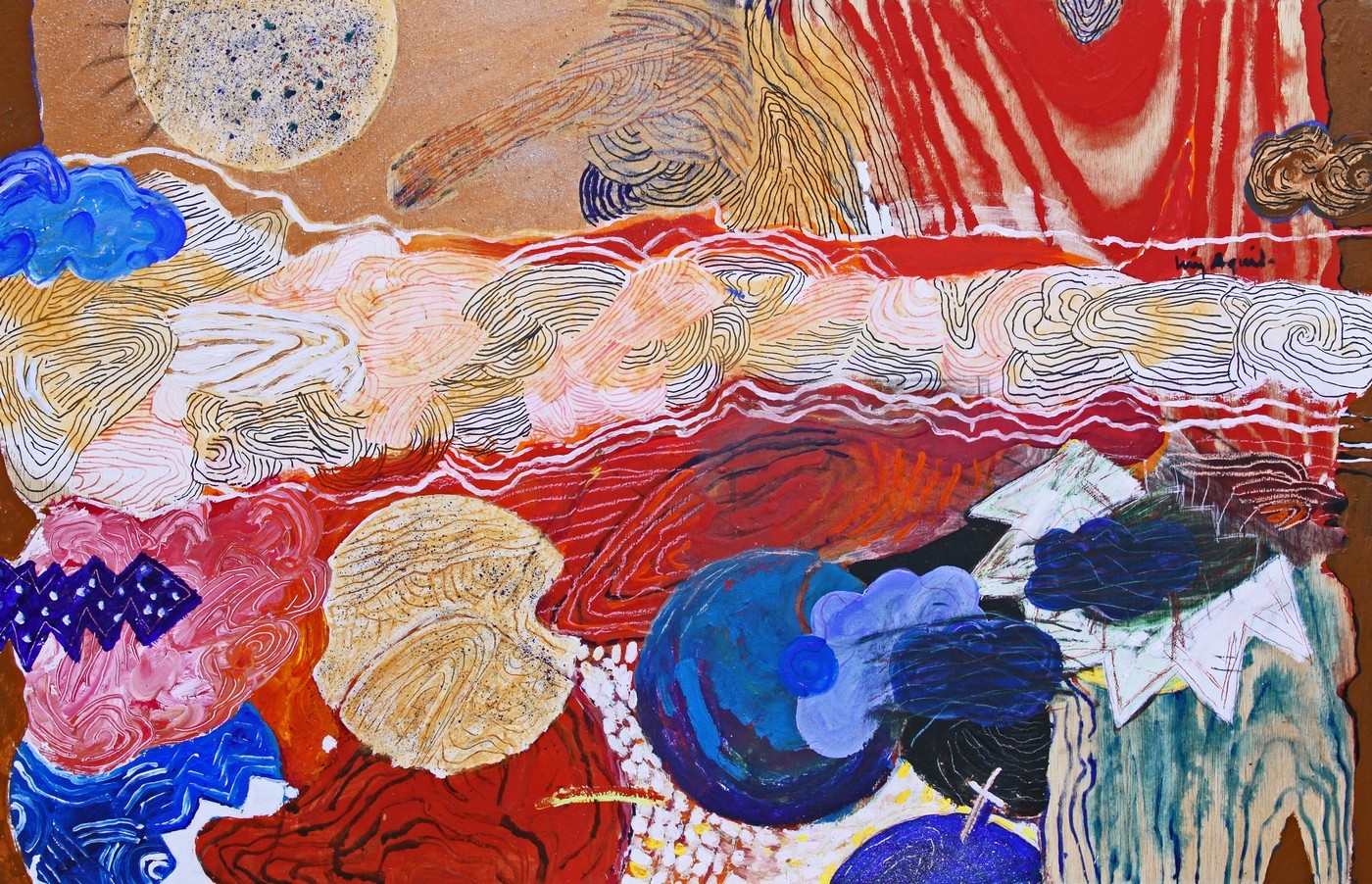 LuizAquila - A pintura e o Rebelde, 2012 - Acrílica e cartão colado sobre tela, assinado inferior direito; assinado, datado e titulado no verso. - 40 x 60 cm.