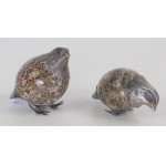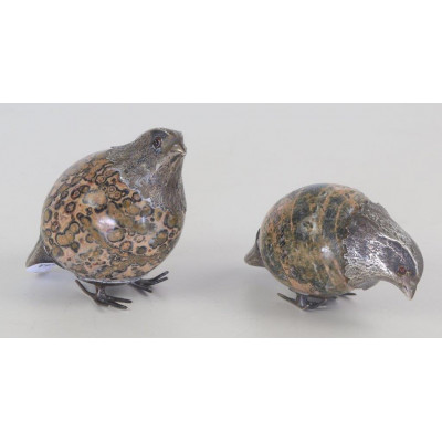LUIZ FERREIRA - Par de pássaros de pedra com acabamento em prata de lei contraste Águia. Portugal Sec XX, 6 cm alt.