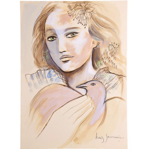 Luiz Jasmin - Figura feminina com pombo - TMSP - 44 x 33 cm - Acid
