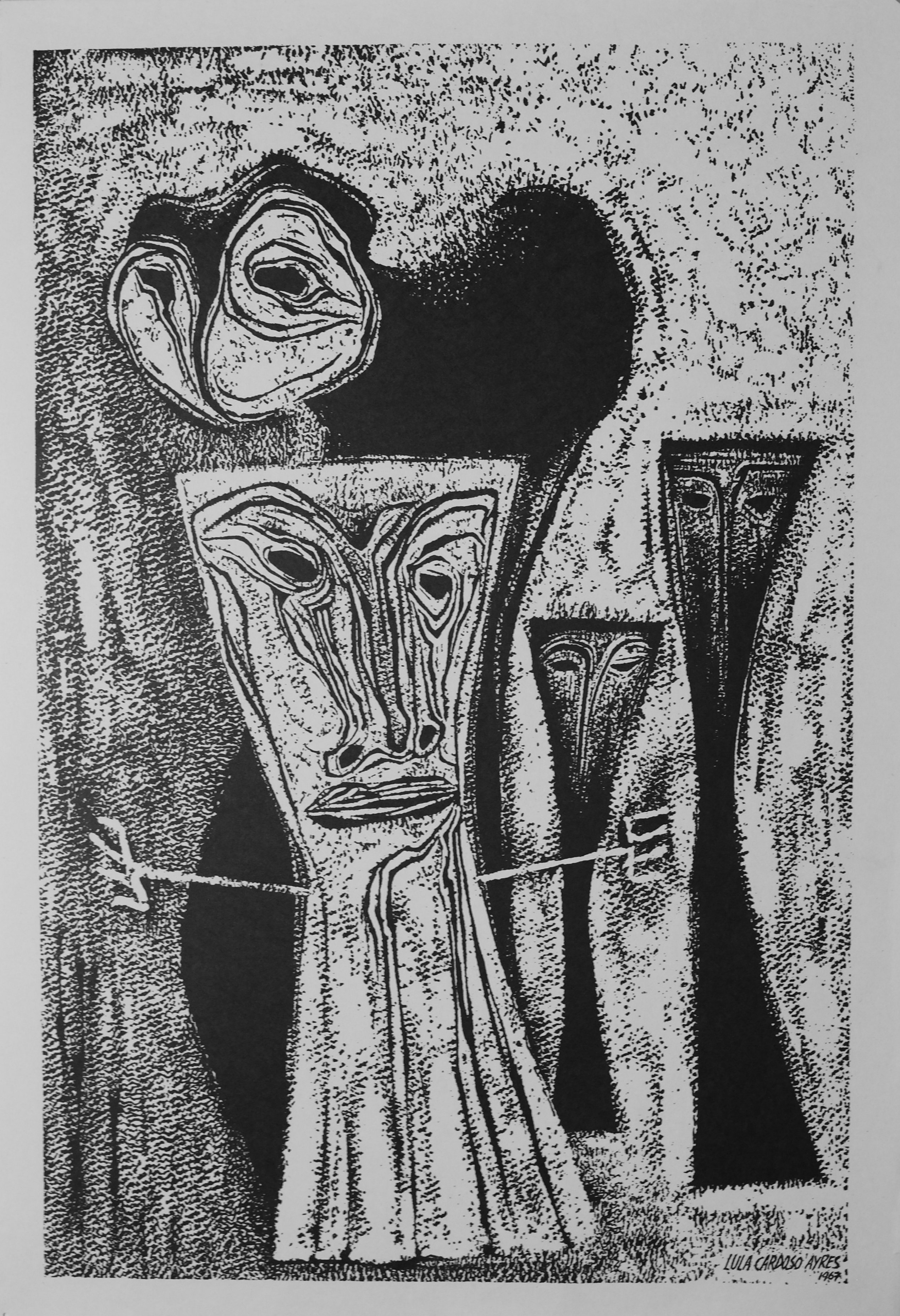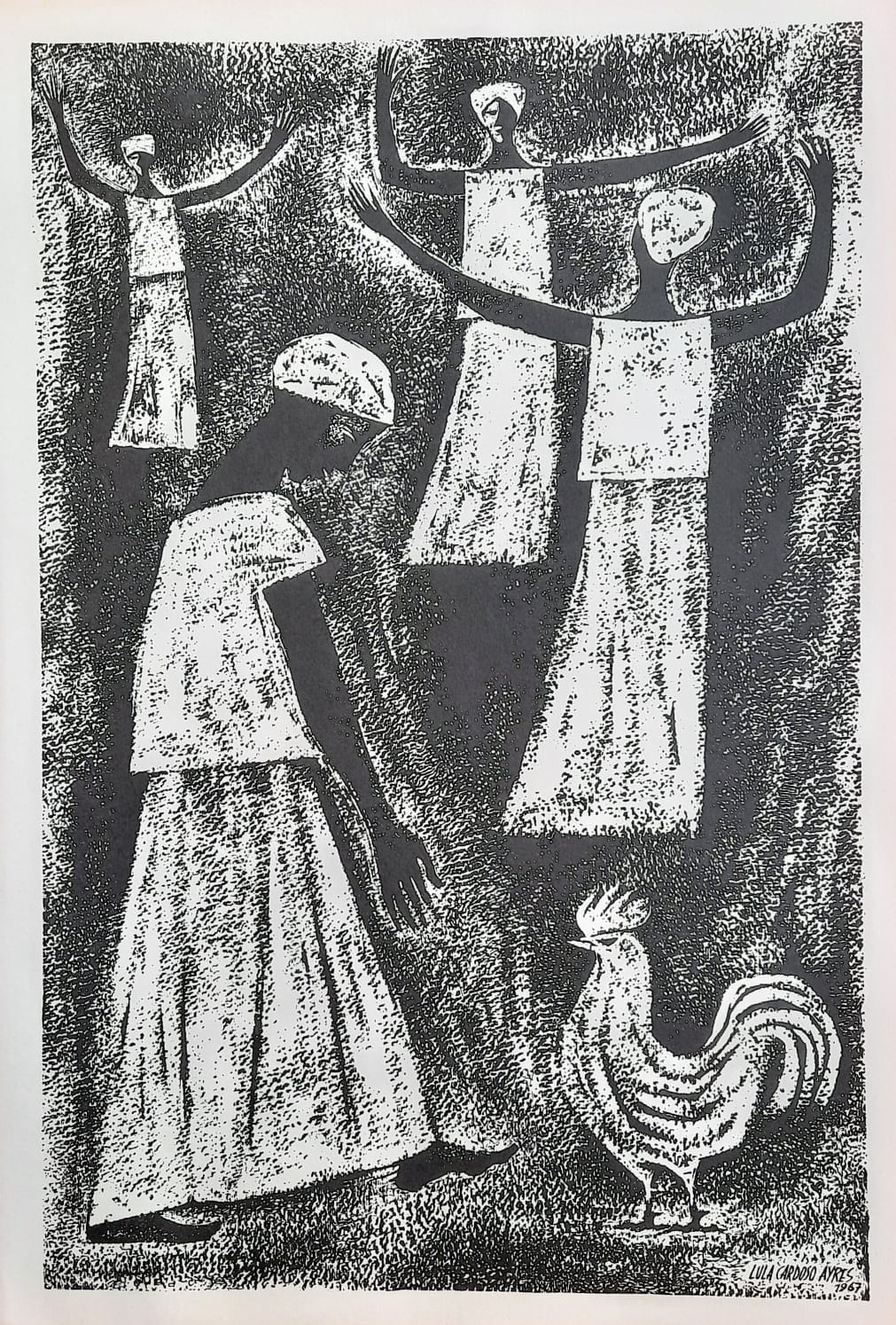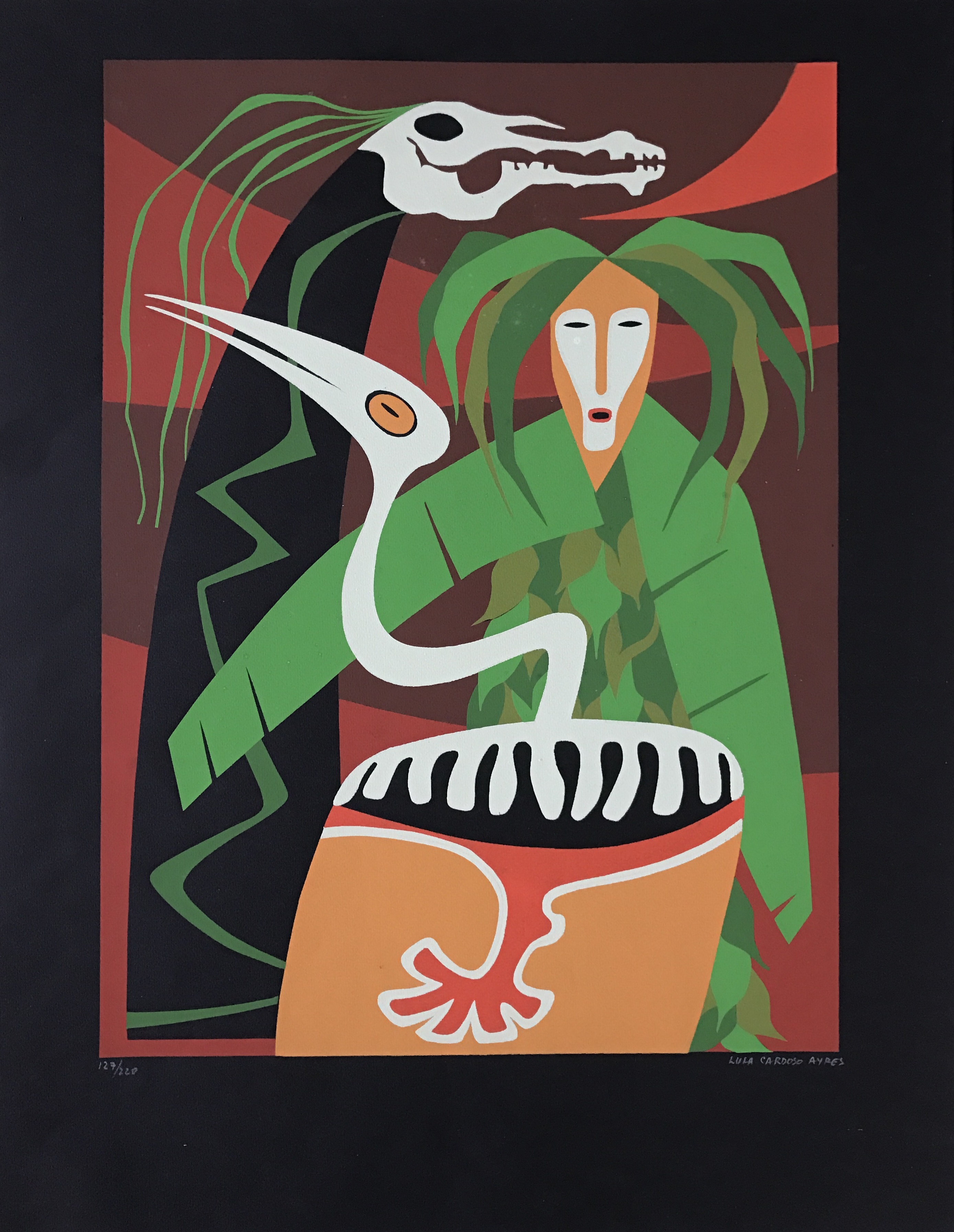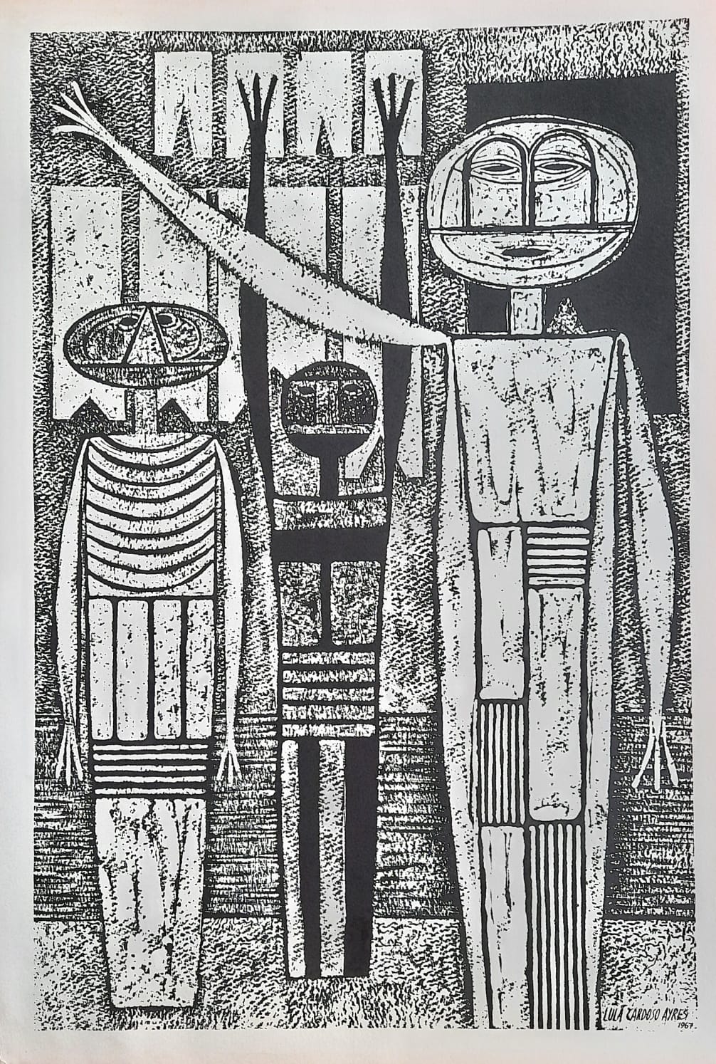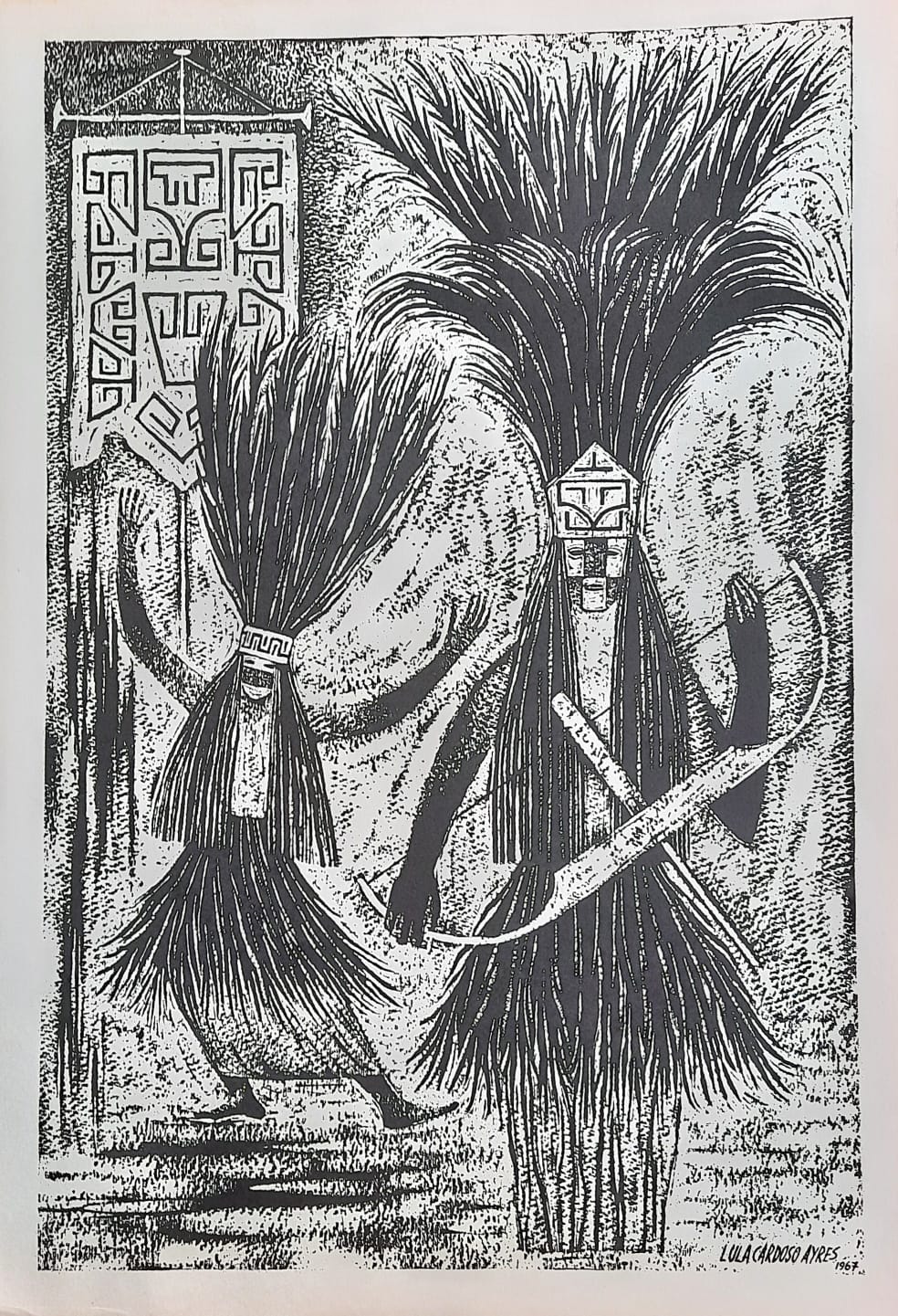 LULA CARDOSO AYRES(1910 — 1987) SERIGRAFIA, 1960. CARIMBO NO VERSO: "CABOCLINHAS (CARNAVAL DO RECIFE)" EDIÇÃO MARIO DE LA PARRA EM FORMATO DE CARTÃO. MEDIDAS: 25 X 15 CM