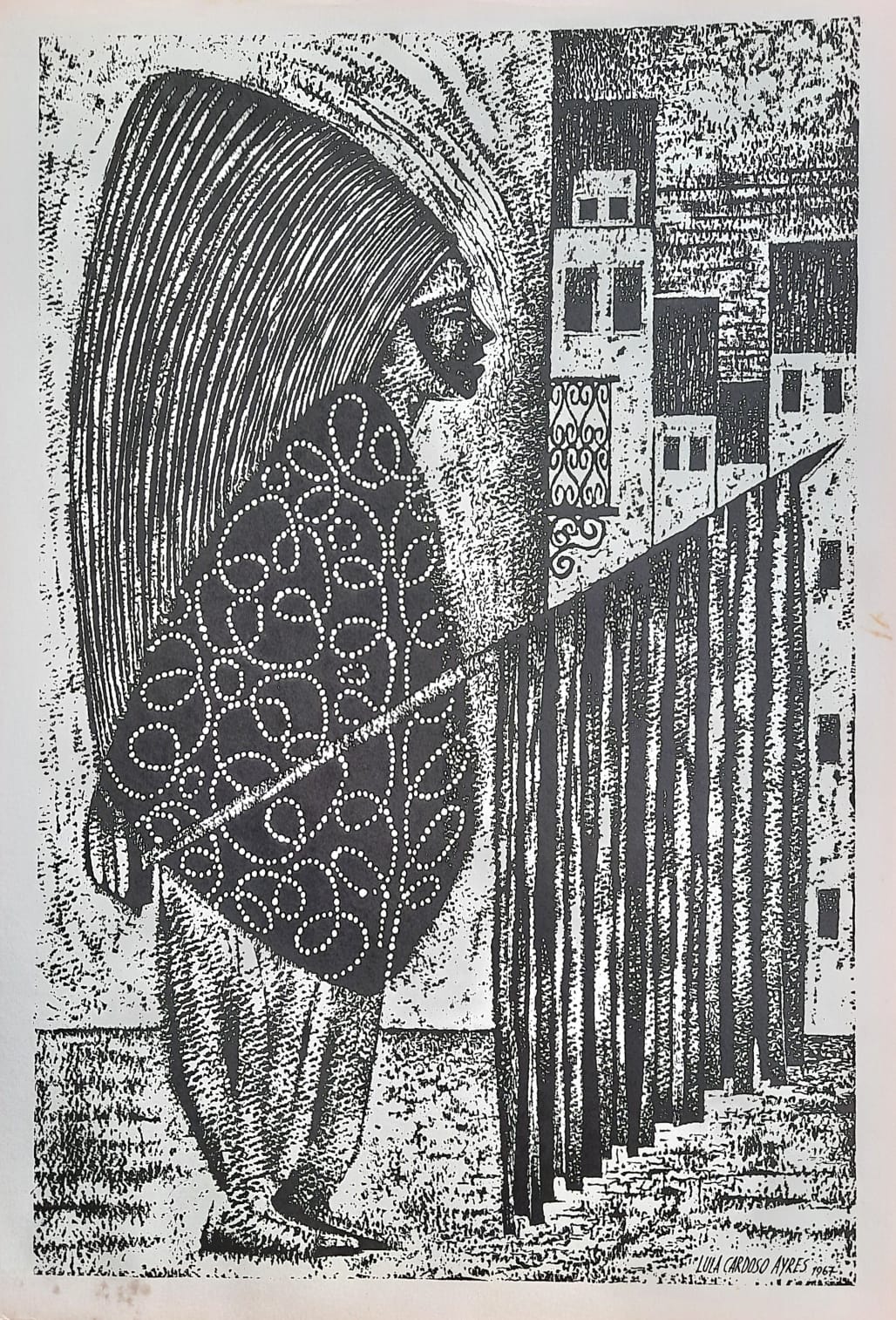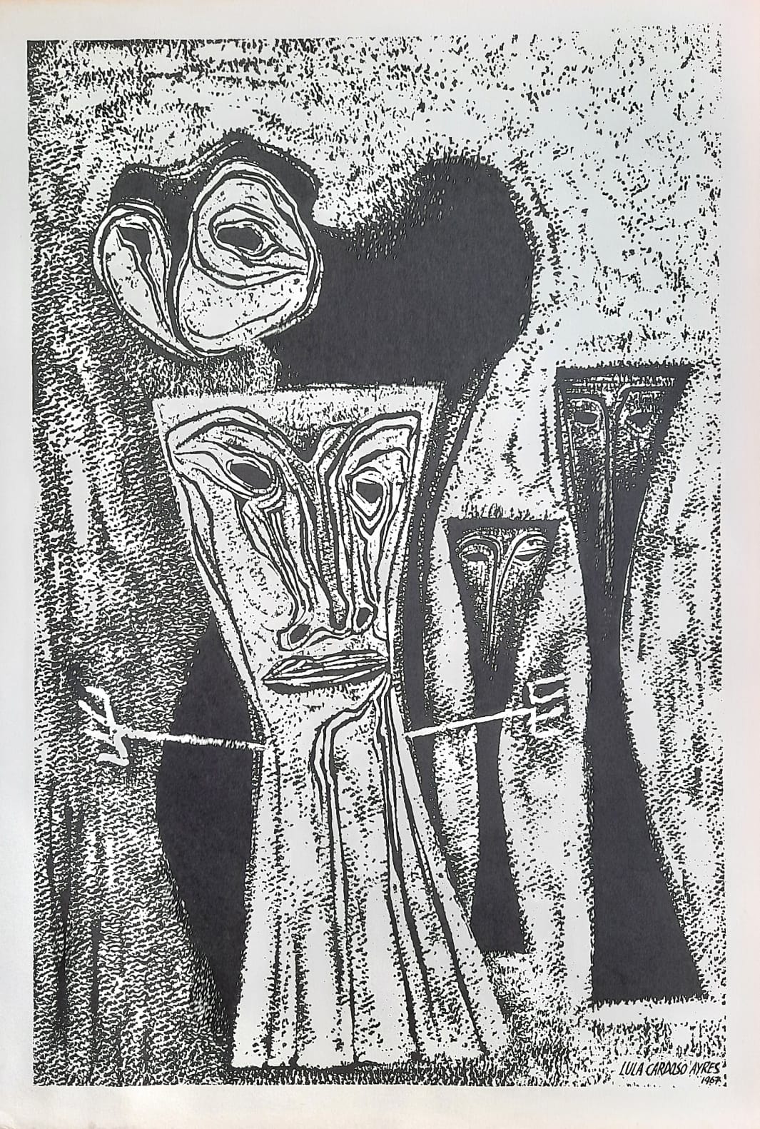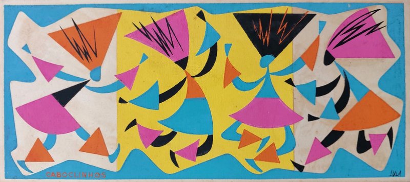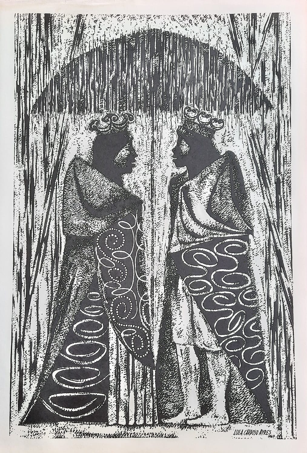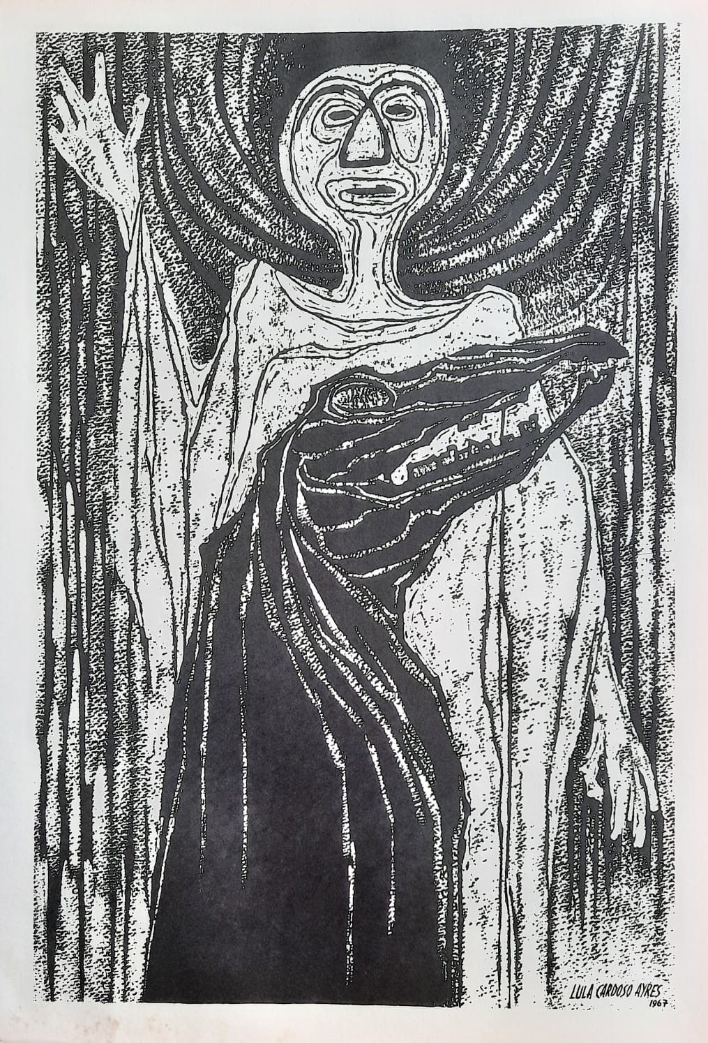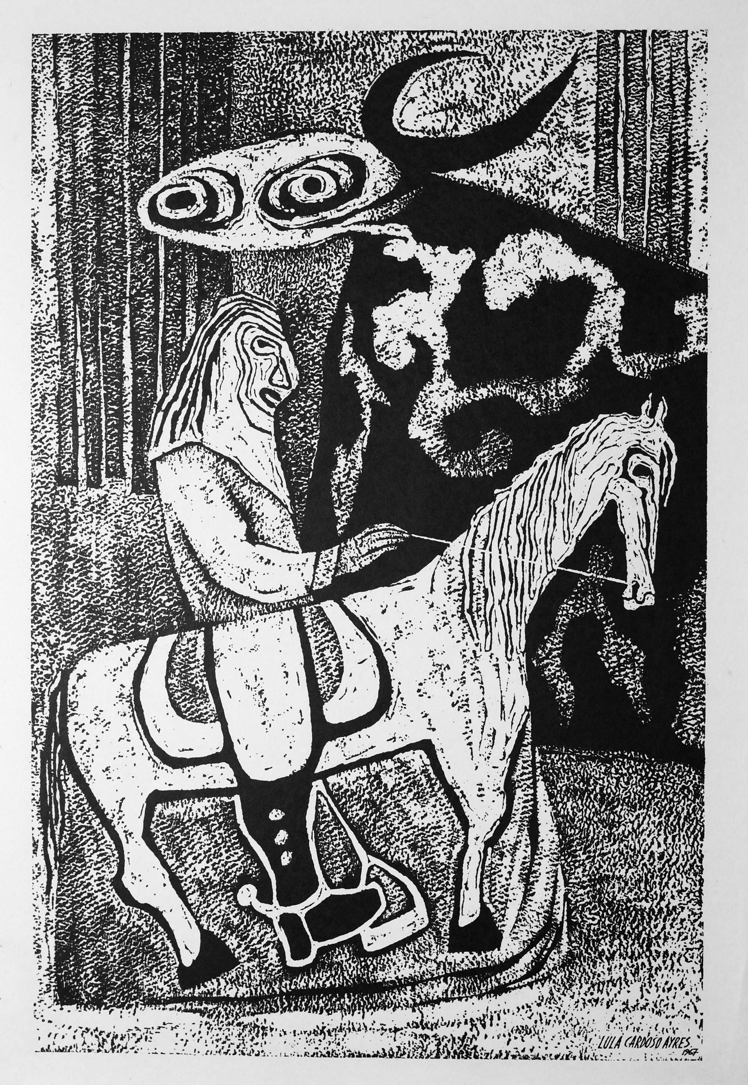 LULA CARDOSO AYRES(1910 — 1987) SERIGRAFIA, 1960. CARIMBO NO VERSO: "CABOCLINHAS (CARNAVAL DO RECIFE)" EDIÇÃO MARIO DE LA PARRA EM FORMATO DE CARTÃO. MEDIDAS: 25 X 15 CM