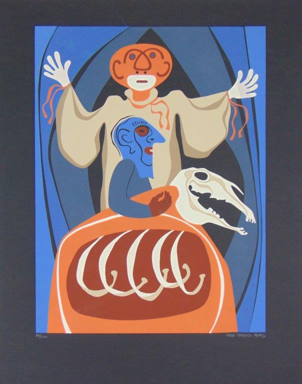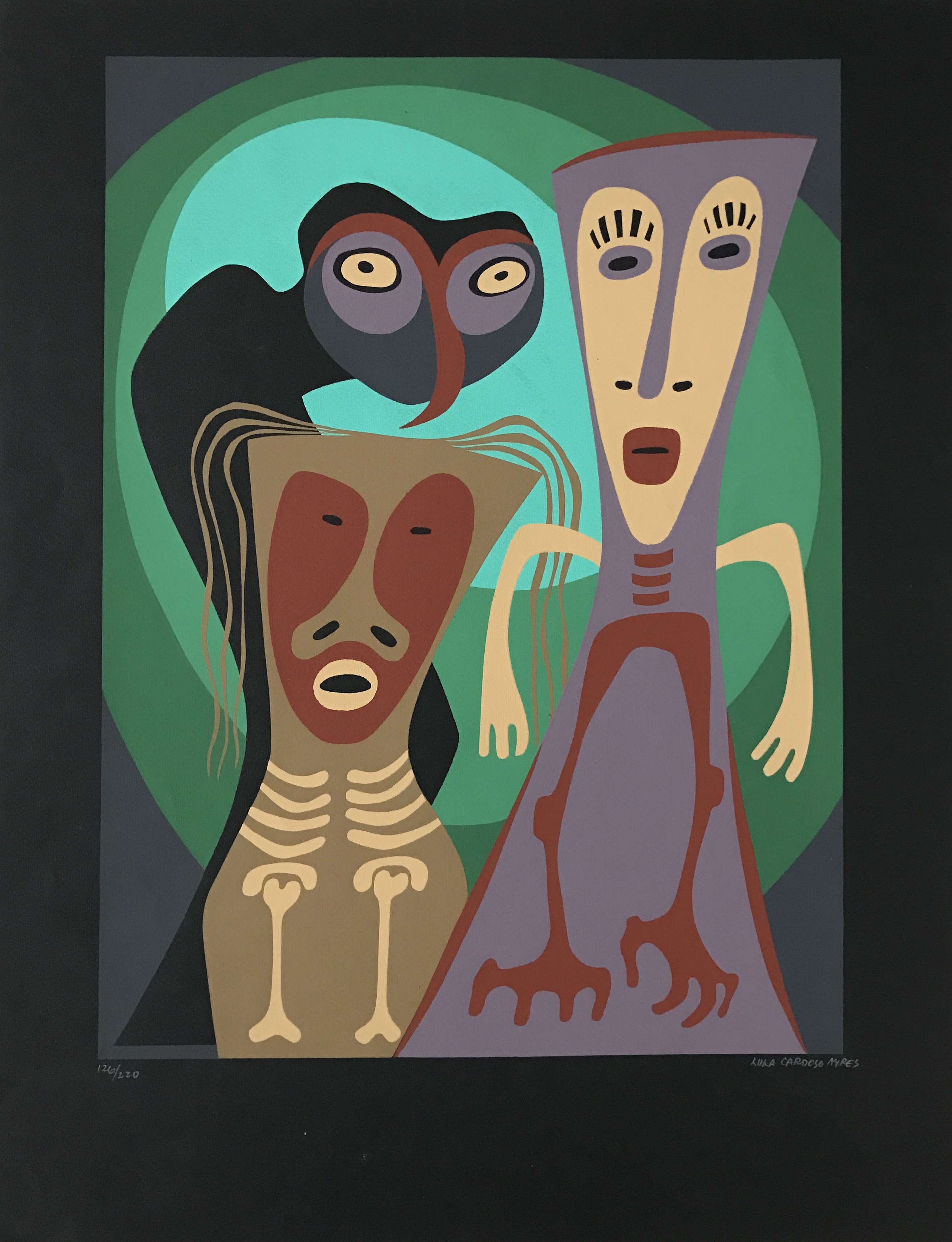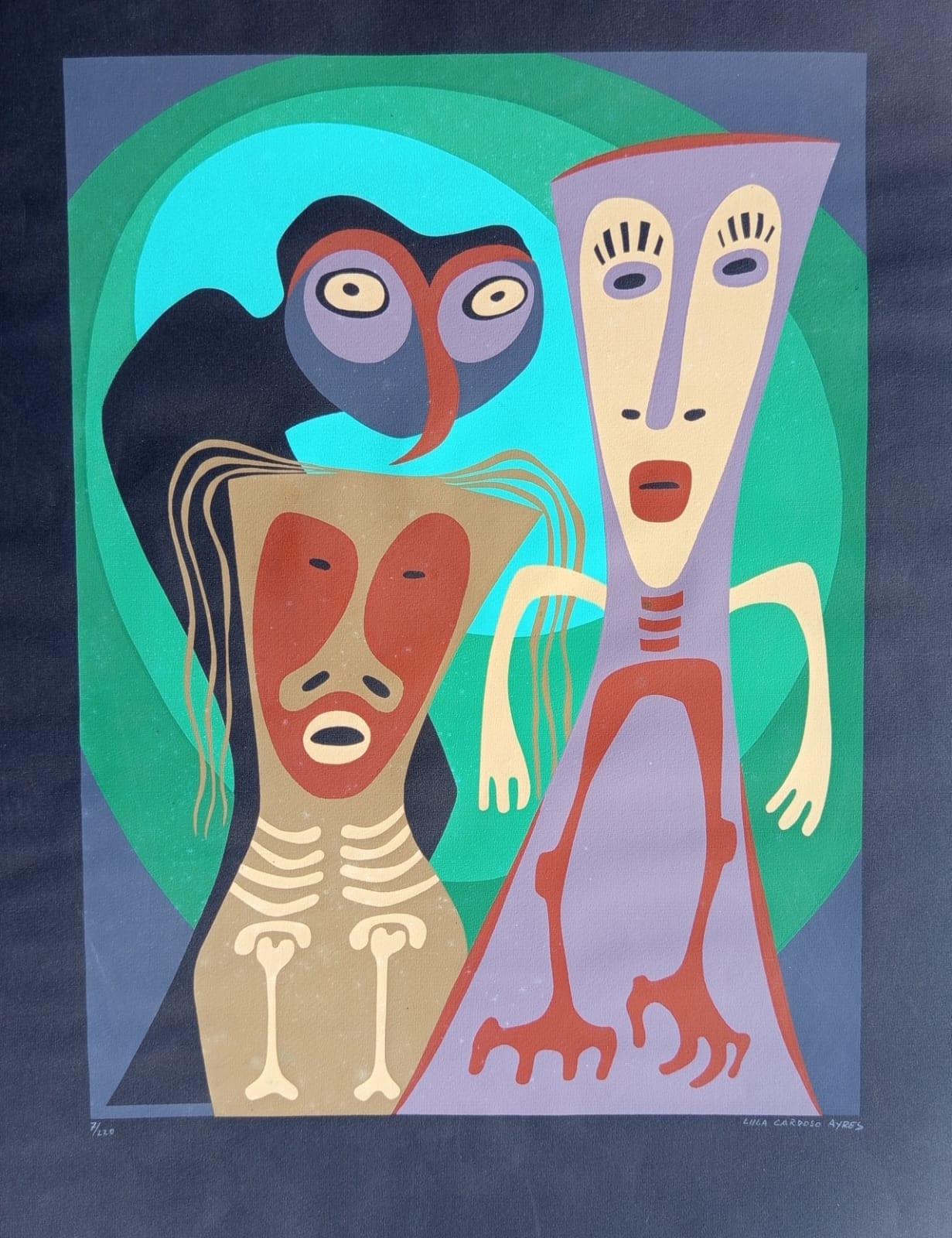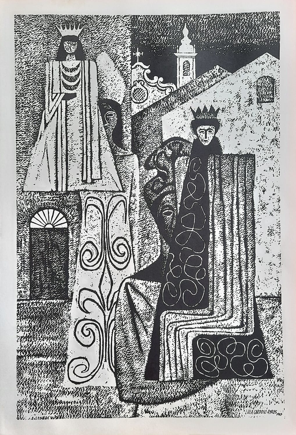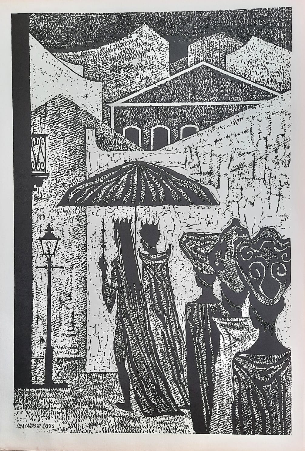 LULA CARDOSO AYRES(1910 — 1987) SERIGRAFIA, 1960. CARIMBO NO VERSO: "CABOCLINHAS (CARNAVAL DO RECIFE)" EDIÇÃO MARIO DE LA PARRA EM FORMATO DE CARTÃO. MEDIDAS: 25 X 15 CM