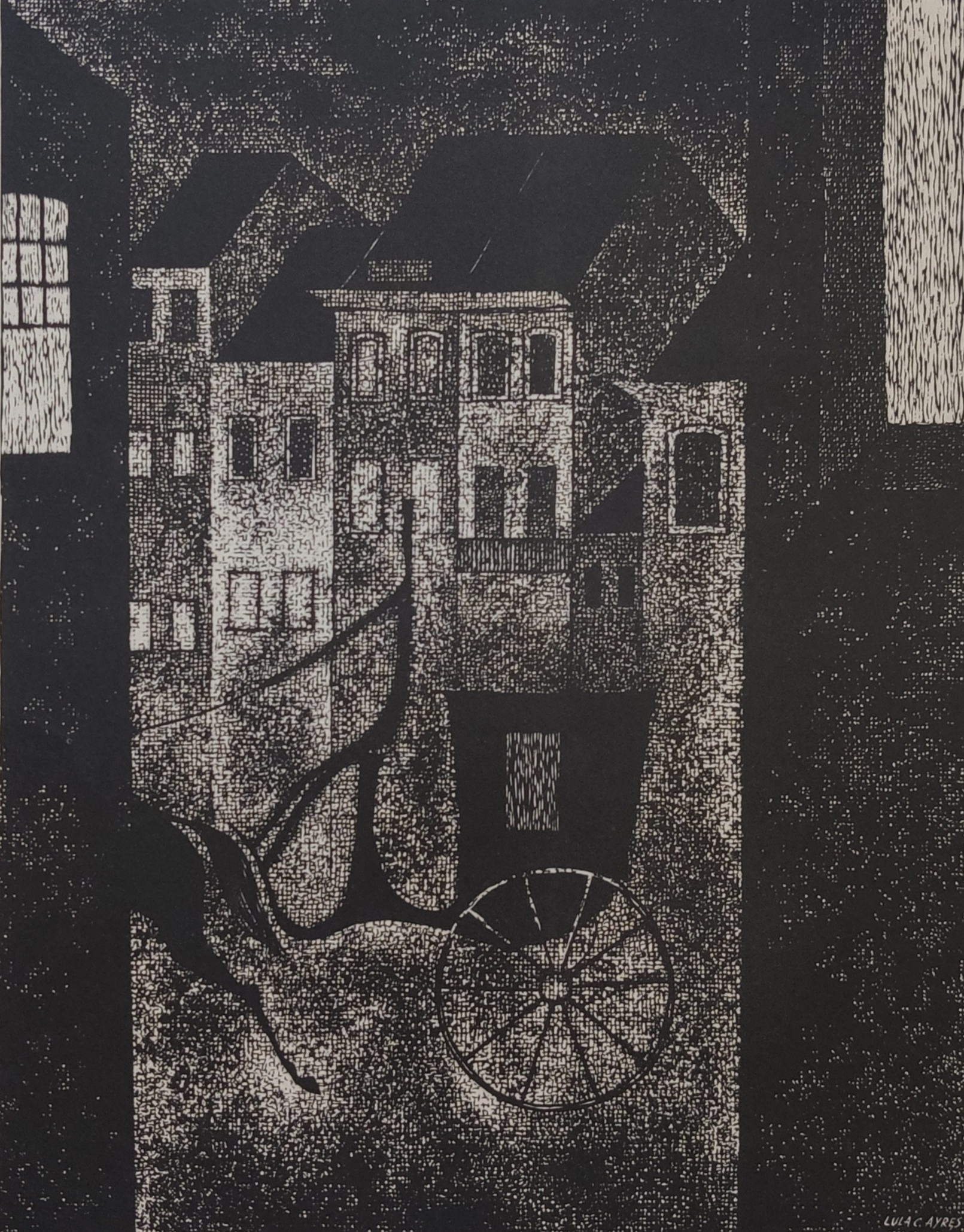 Luiz Gonzaga Cardoso Ayres (Recife PE 1910 - idem 1987). Pintor, fotógrafo, desenhista, ilustrador, muralista, cenógrafo. Estuda desenho e pintura com Heinrich Moser, entre 1922 e 1924. Viaja para Paris em 1925, visita a 1ª Exposição Internacional de Arte Decorativa, frequenta museus e ateliês de pintores como Maurice Denis e entra em contato com os movimentos artísticos modernos da Europa. Regressa ao Brasil no ano seguinte. No Rio de Janeiro, estabelece ateliê no bairro de Laranjeiras, frequenta informalmente a Escola Nacional de Belas Artes - Enba, e tem aulas de modelo vivo com Rodolfo Amoedo. No ateliê de Carlos Chambelland, estuda desenho e pintura. Conhece Candido Portinari, de quem se torna amigo. Profissionalmente, realiza cenários para teatro e atua como ilustrador e caricaturista na revista Para Todos.