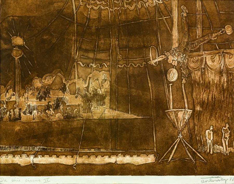 "Maia Borkowski, uma das mais ativas artistas de BH, atuando na pintura relevo em cimento e especialmente na escultura, vem trabalhando com o bronze, pequenos, cereais, únicas e em multiplos.