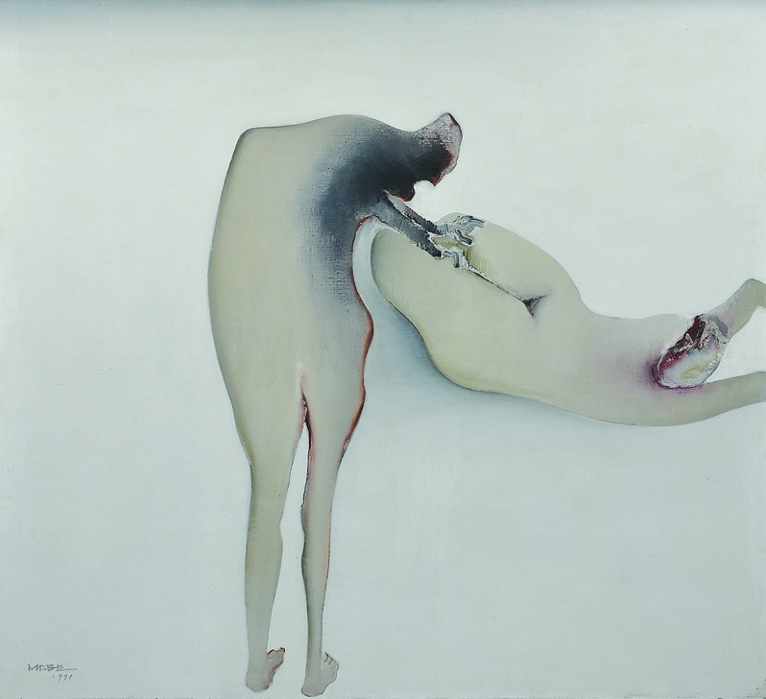 Manabu Mabe - Nu. Acrílica, pastel e grafite sobre papel, 27,5x37,5 cm, 1988, A.C.I.D. Com moldura e dedicatória.