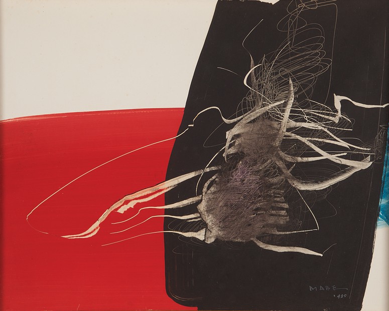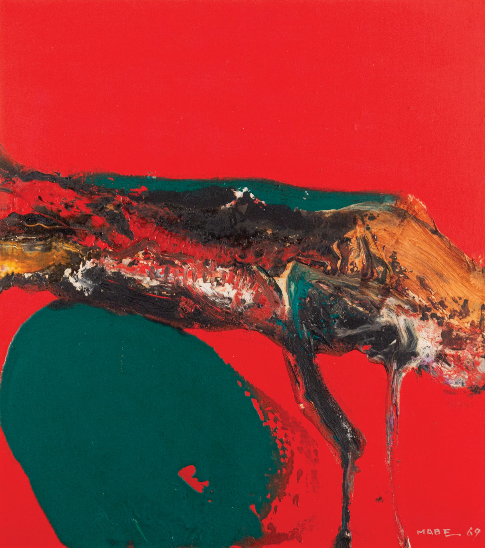 Manabu Mabe - Pintura nº 1 - 1958 - Óleo sobre aglomerado de madeira - Assinado canto inferior direito - 100 x 122 cm. Etiqueta The 5th International Art Exhibition, Tokyo Metropolitan Art Museum, 1959. Etiqueta Paulo Darzé no verso.