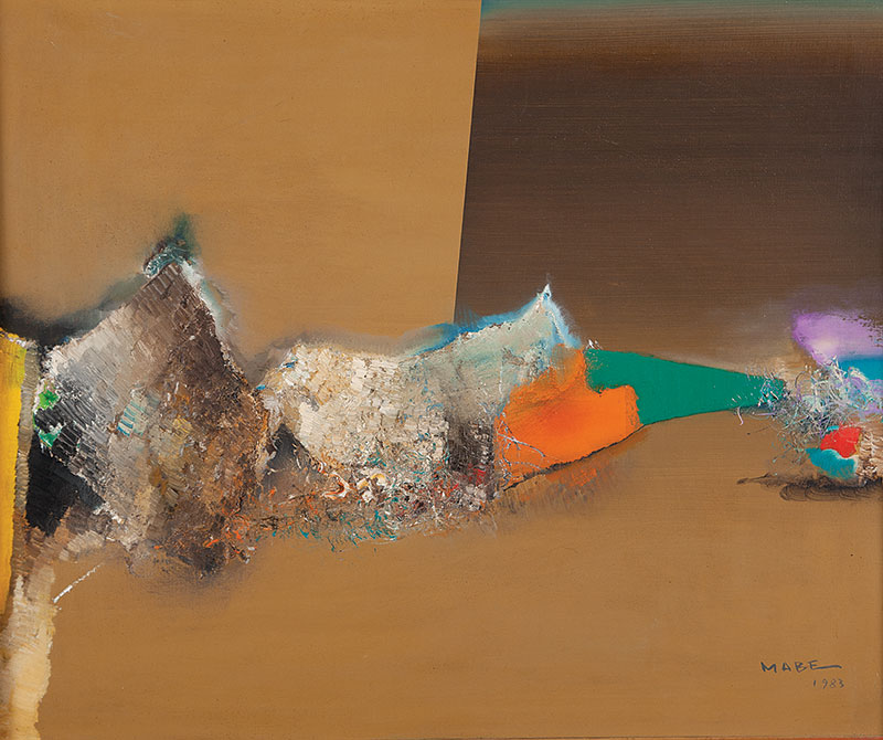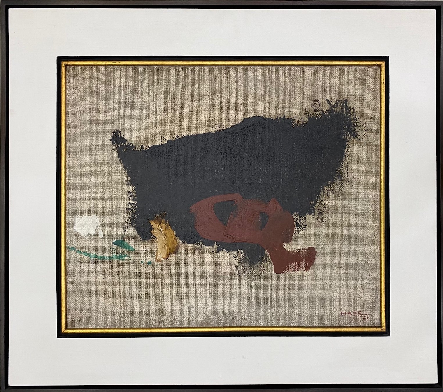 Manabu Mabe - Pintura nº 1 - 1958 - Óleo sobre aglomerado de madeira - Assinado canto inferior direito - 100 x 122 cm. Etiqueta The 5th International Art Exhibition, Tokyo Metropolitan Art Museum, 1959. Etiqueta Paulo Darzé no verso.