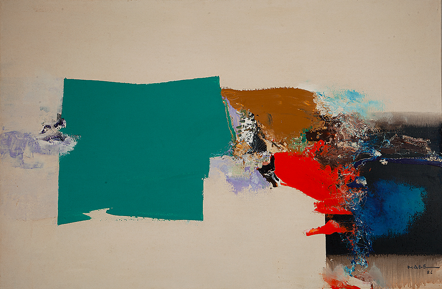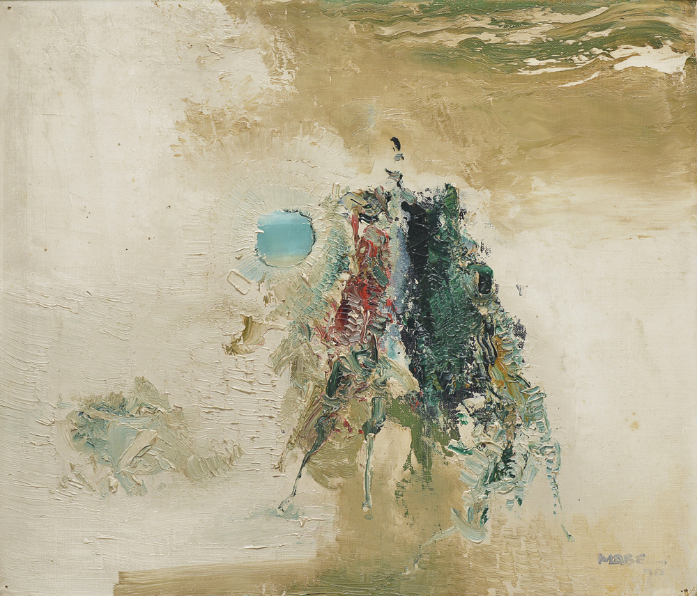 Manabu Mabe - Pintura nº 1 - 1958 - Óleo sobre aglomerado de madeira - Assinado canto inferior direito - 100 x 122 cm. Etiqueta The 5th International Art Exhibition, Tokyo Metropolitan Art Museum, 1959. Etiqueta Paulo Darzé no verso.