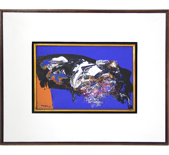Manabu Mabe - Sem título. Acrílica sobre cartão, 35x50 cm, 1993, A.C.I.E. Com moldura