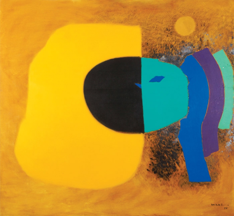 MABE "Abstrato - 1969" Oleo e Tecnica Mista S/ Duratex -Med 50x35 cm (Obra) 75x60 cm (Mold) -Assinado e Dat 69 no CIE -Acompanha Certificado do Instituto Mabe. devidamente registrada e catalogada no Instituto. Medida Total com a Moldura em Madeira: 75x60 cm.