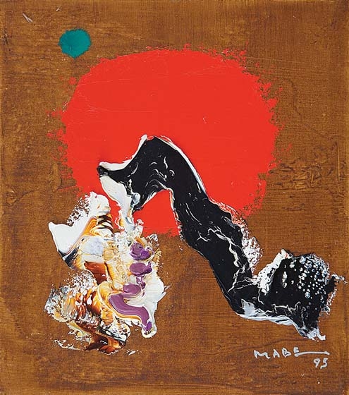 Manabu Mabe - Sem título - 1985 - Óleo sobre eucatex - Assinado canto inferior direito - 57 x 67 cm.