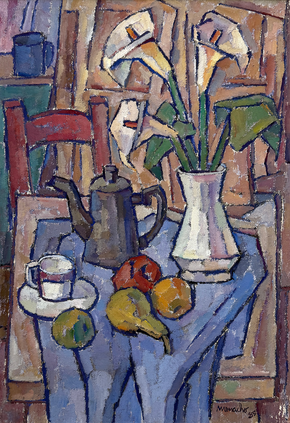 MENACHO, Manoel Martins - "Natureza morta" - óleo sobre tela - 65 x 45 cm - a.c.i.d. 1985