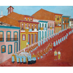 Manezinho Araújo - Procissão em Ouro Preto - Óleo sobre tela - 48 alt x 53 larg (cm) - acid - 1968
