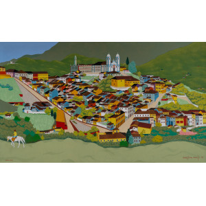 Manezinho Araújo - Brasiliana - 1971 - Óleo sobre tela - Assinado canto inferior direito - 100 x 170 cm. Etiqueta do artista no verso.
