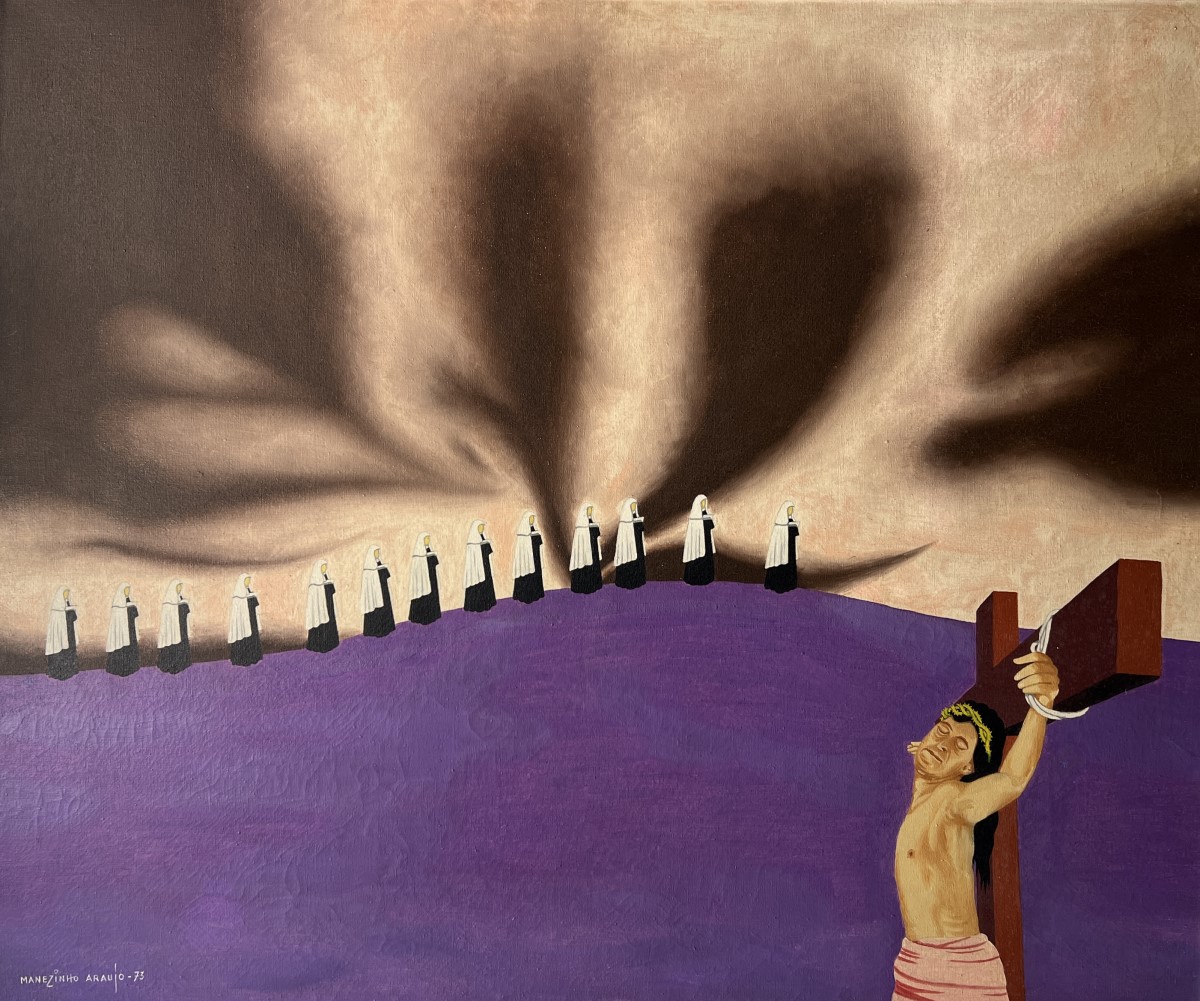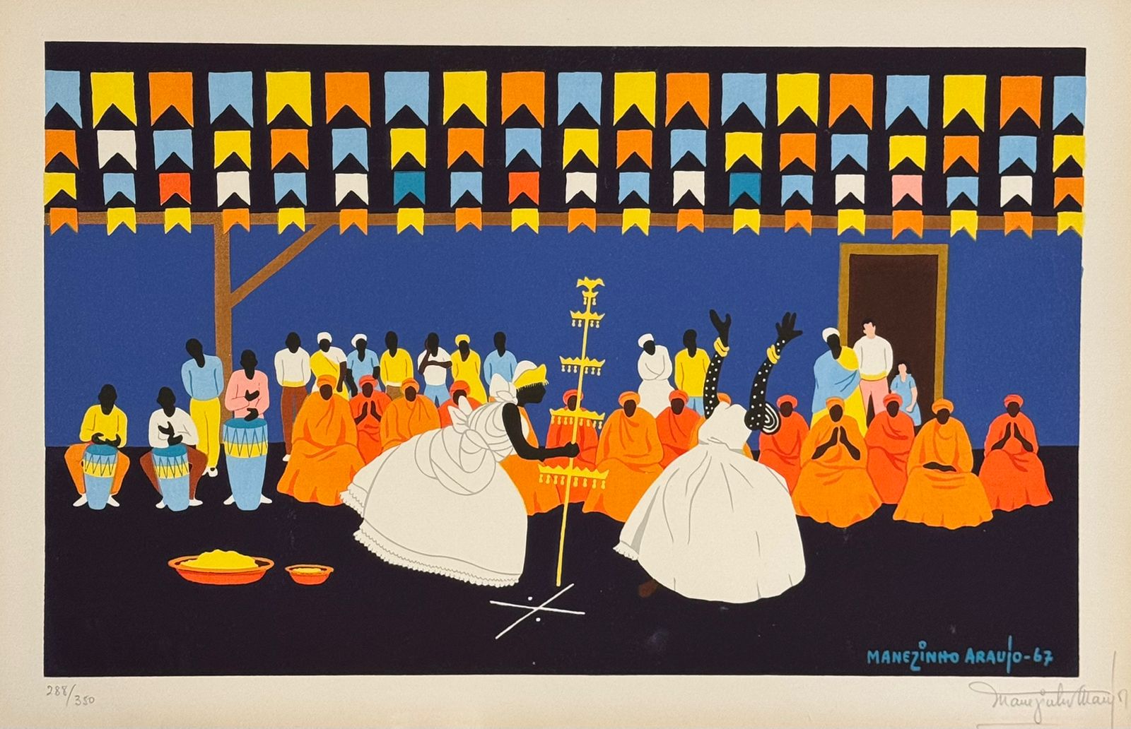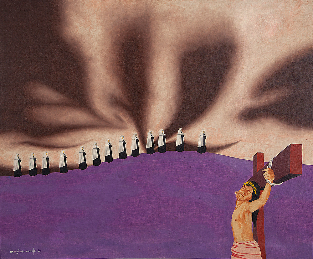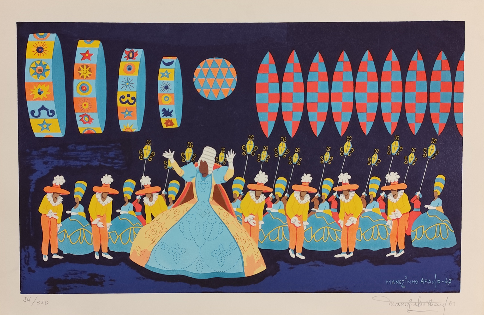 Manezinho Araújo - Porta Estandarte, 1967 - Óleo sobre tela, assinado e datado inferior direito e titulado esquerdo. - 50 x 40 cm.