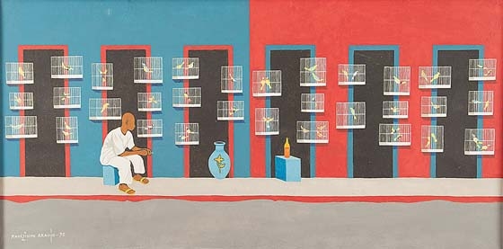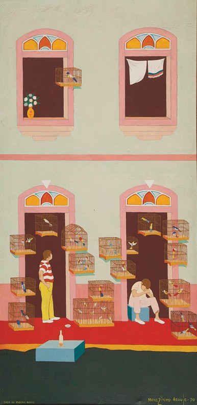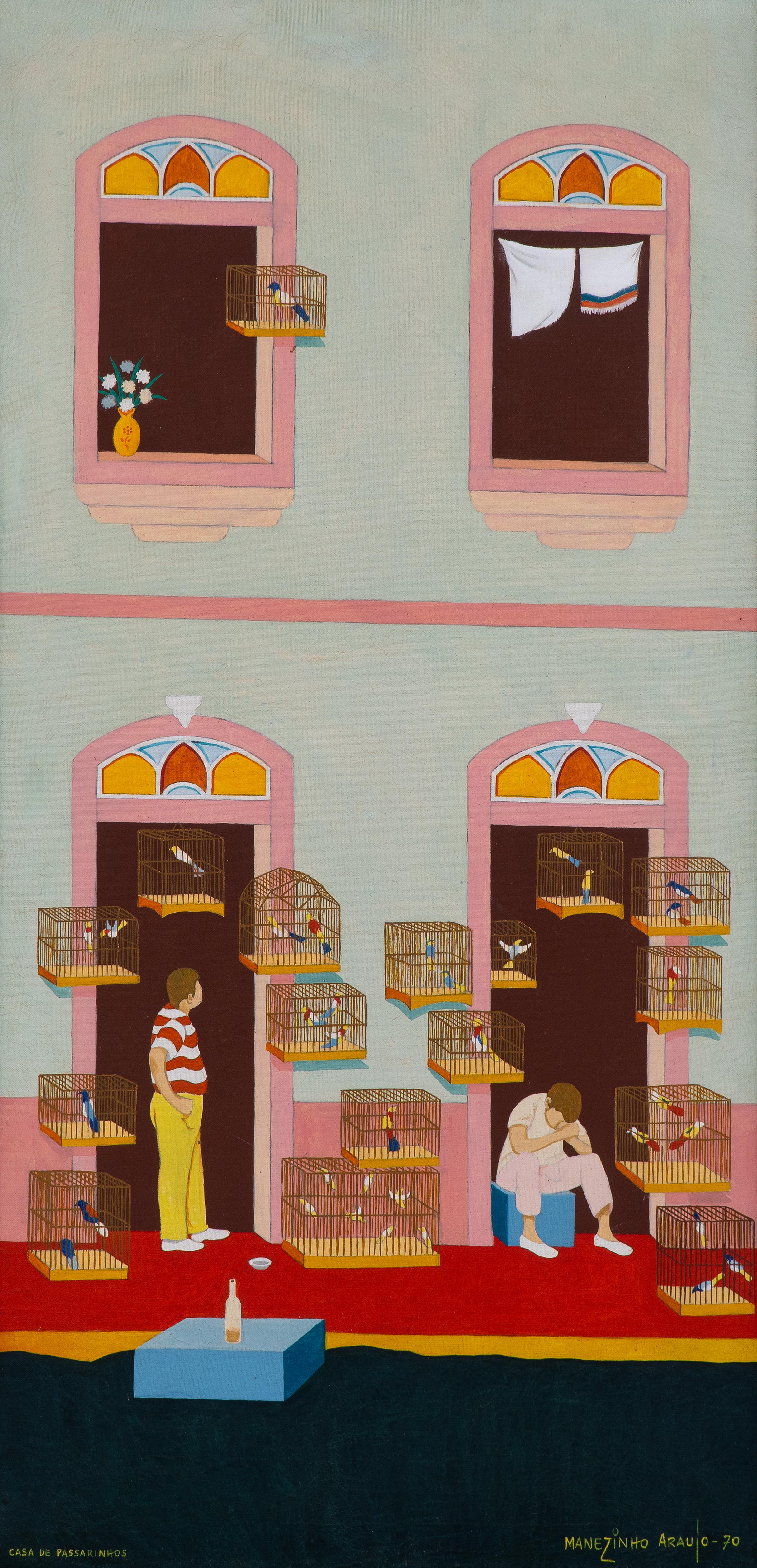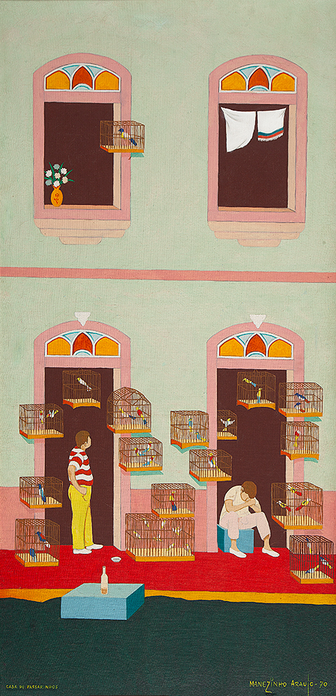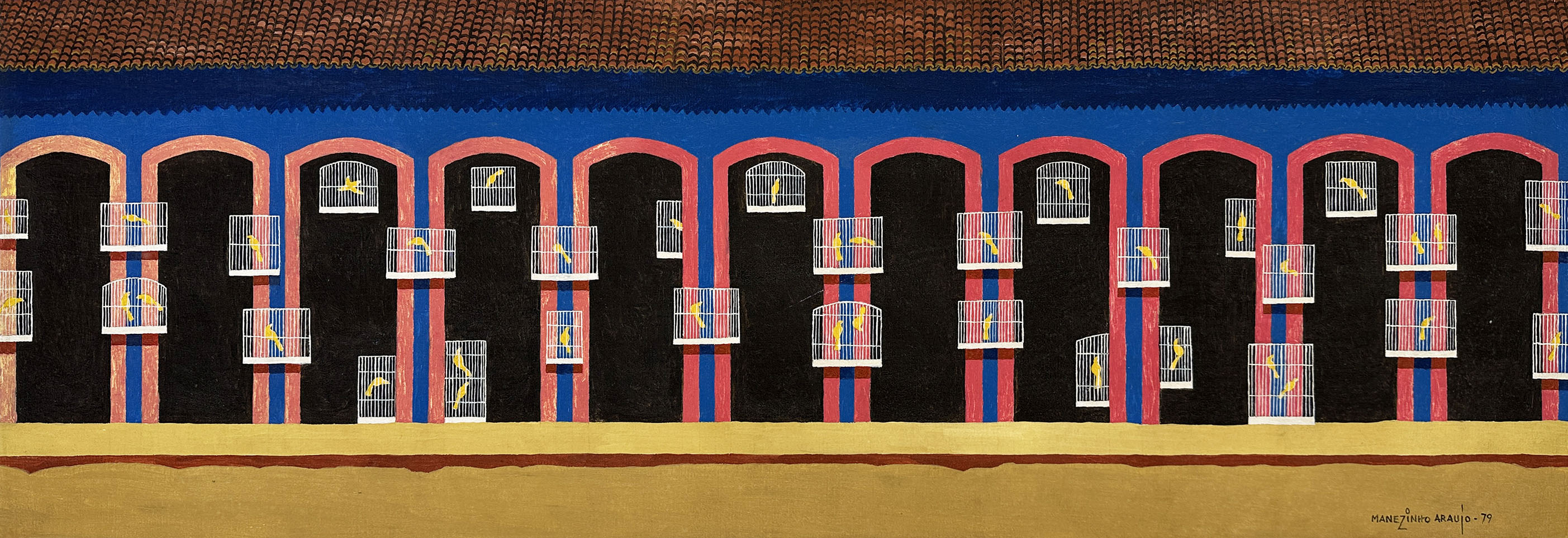 Manezinho Araújo - Gaiolas, 1979 - Óleo sobre tela, assinado e datado inferior direito - 35 x 100 cm.