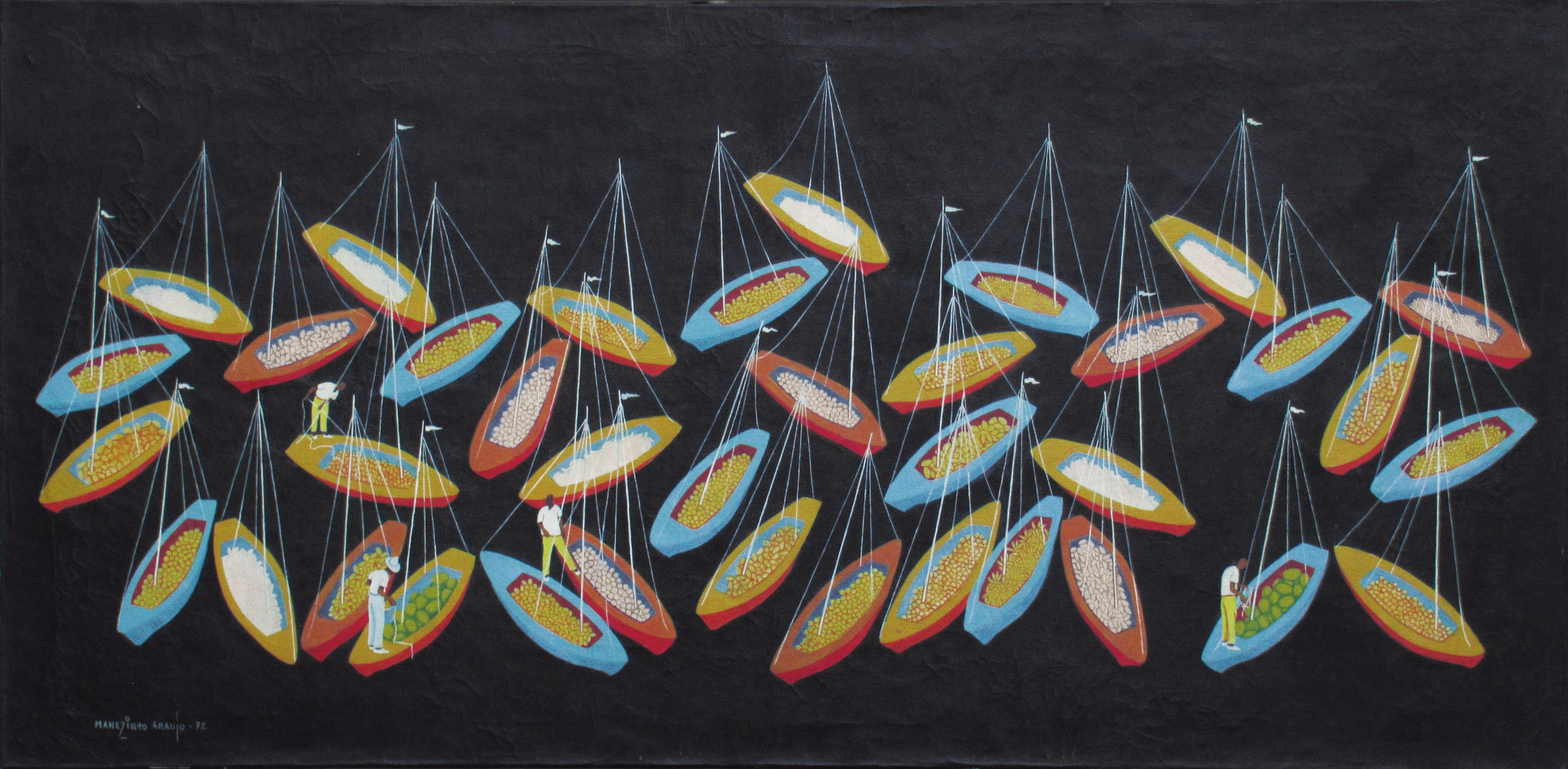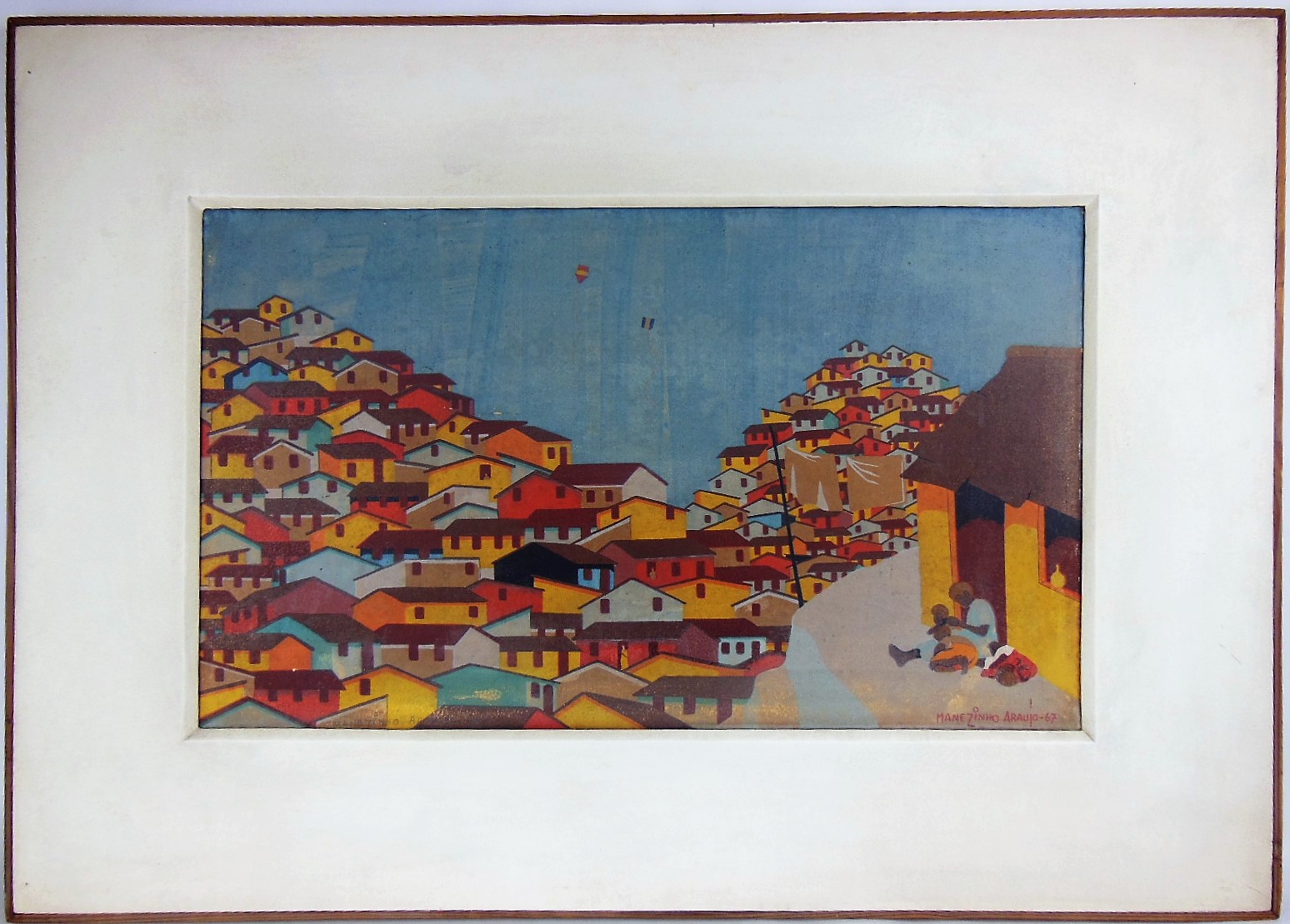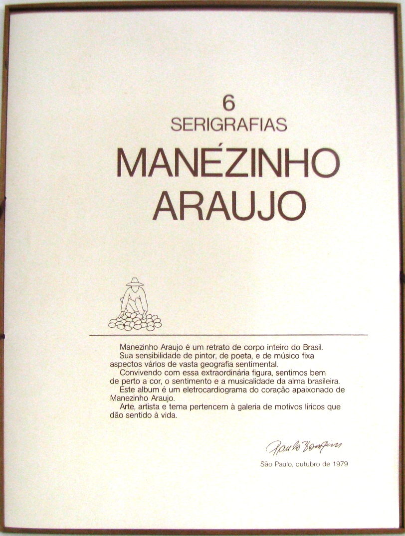 Pintor e músico. Manuel Pereira de Araújo dito (1910: Cabo, PE – 1993: São Paulo, SP). Praticou a pintura ingênua, com situações e pessoas felizes, em cores alegres e desenho estilizado. “O grande desafio estava lançado. Autodidata, e dizendo-se ‘ceguinho em técnica’, Manezinho começou com aquarela e guache, sem orientação alguma, e culminou pintando com tinta a óleo, quando sua esposa lhe presenteou com um conjunto de tintas,...